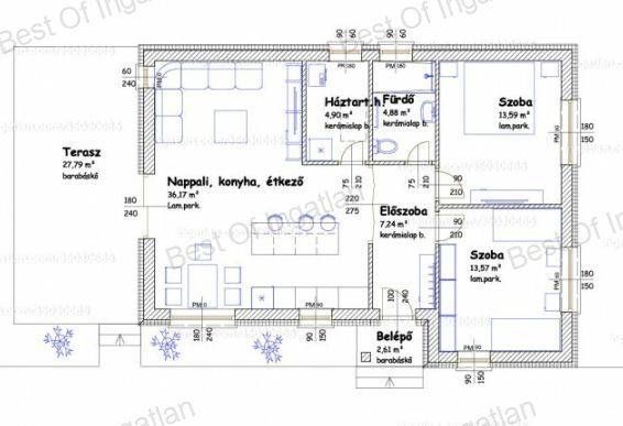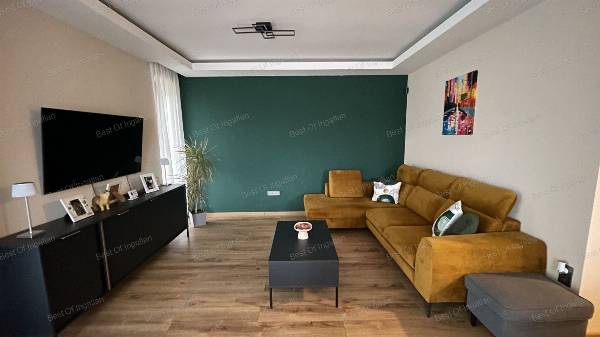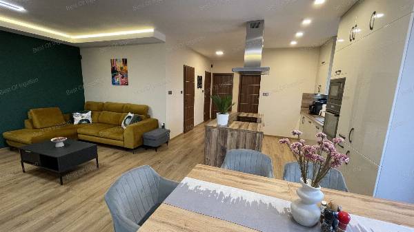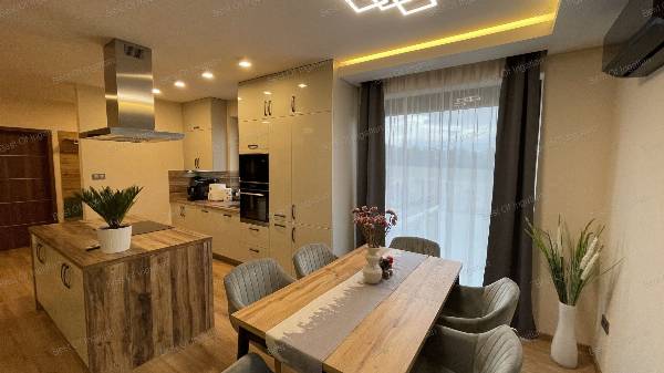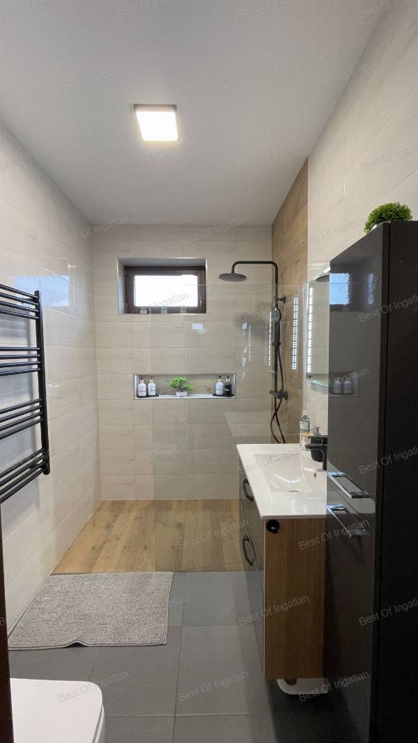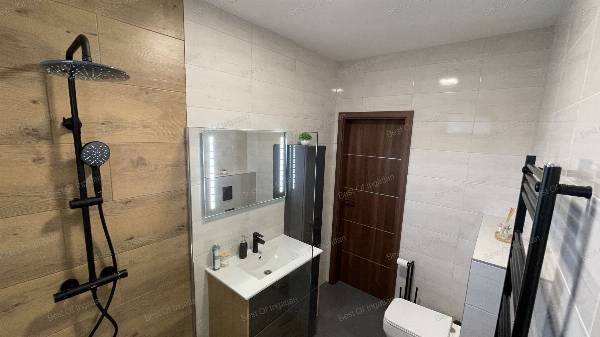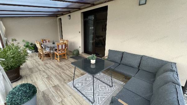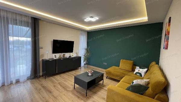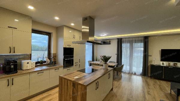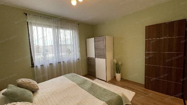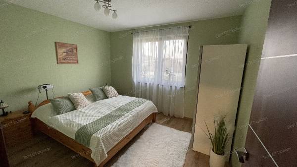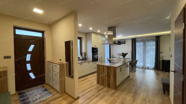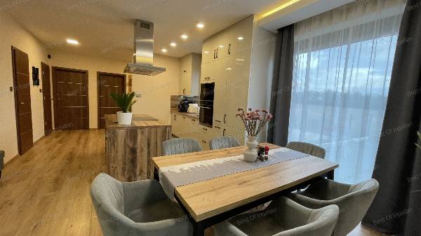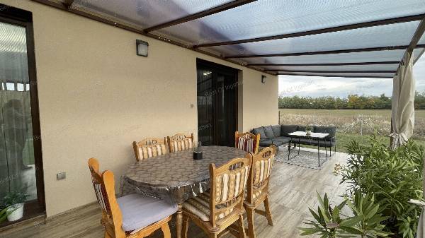 A Best of Ingatlan Győr- Ingatlaniroda eladásra kínálja Győrtől pár percre fekvő Győrságon, 2024-ben épült, 80 m2-es, nappali + 2 szobás, 27 m2-es fedett teraszkapcsolatos, téglaépítésű, részben bútorozott családi házat, 713 m2-es, füvesített, körbekerített telken. Legyen Ön az új lakója ennek a csodás otthonnak! Ezt látnia kell..... Jó választás Önnek! Nem kell, hogy építkezés miatt fájjon a feje..... 2024-ben épült, újszerű, egyszintes családi ház egy csendes, átmenő forgalomtól mentes utcában található, Győrság új parcellázású részén. Nettó 80 m2-es ingatlan 30 cm tégla falazóelemekből, 20 cm homlokzati hőszigeteléssel, Bramac cserépfedéssel, színben hozzáillő ereszcsatornával épült 3 rétegű, kívül-belül barna fóliás műanyag nyílászárókkal, elektromos és manuális alumínium redőnnyel és szúnyoghálóval került kivitelezésre. 5 ponton záródó, biztonsági bejárati ajtót építettek be. A ház fűtéséről és melegvíz ellátásáról kondenzációs gázkazán gondoskodik, padlófűtéses hőleadással. Az étkezőben dizájnos hűtő-fűtő klíma (3,5KW) gondoskodik a megfelelő hőmérséklet eléréséről. Központi vízlágyító rendszer működik a házban. A ház belső elosztása: belépőn keresztül jutunk az előszobába, balról a tágas amerikai konyha + étkezős nappaliba juthatunk, amely nagy, fedett teraszkapcsolattal rendelkezik. Mellette a háztartási helyiség található, ahova egy plusz wc-t is beépítettek. Emellett a törölközőszárítós, zuhanyzós fürdőszoba + wc található. Mindkét hálószoba élhető méretű, jól bútorozható. A gépesített, modern, minőségi konyha beépített gépei még garanciálisak. A ház biztonságáról kiépített riasztórendszer gondoskodik. 27 m2-es, polikarbonát tetős, fedett, kerámiaburkolatos terasz alkalmas helyszín lehet baráti vagy családi összejövetelekre. A kert gondozását kerti csap segíti elő. Parkolás udvaron belül több autó számára megoldott. Az ízléses családi ház burkolata, minőségi, belső berendezése, felszerelése egy egységet alkot, a harmónia minden m2-en jelen van..... Jöjjön el, nézze meg! Nem fog csalódni benne! Hívjon most, nehogy lemaradjon róla! Fülöpné Máté Ildikó +36 30/993-2787 További szolgáltatásaink: - díjmentes, bankfüggetlen hitelügyintézés - értékbecslés - energetikai tanúsítvány - ügyvédi ügyintézés - biztosítás