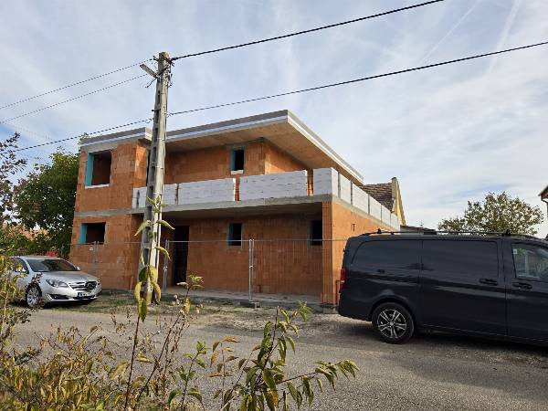 Szeged, Tápé városrészében, kifejezetten csendes, átmenő forgalomtól mentes helyen, távol a város zajától, épül ez a NEM MINDENNAPI családi ház. Az 510 m2-es telken épülő ház lakóterülete 152 m2, plusz a fedett terasz 24 m2, a fedett előtér 15 m2 és egy szenzációs tetőterasz is van 72 m2 területen. A földszinten amerikai konyhás nappali, egy hálószoba, gardrób, háztartási helyiség, fürdőszoba-WC-vel, egy vendég WC, kamra, a felső szinten három hálószoba, közlekedő, és egy fürdőszoba WC-vel található. A ház építése elkezdődött, néhány fotó mutatja a jelenlegi állapotot, kulcsrakész átadása várhatóan 2026 május. A kivitelezés esztétikus, magas színvonalú, a részletekig kiterjedő, minőségi anyagok felhasználásával! NÉHÁNY műszaki paraméter: A külső falazata Phorotherm 30 tégla, rajta 15 cm Austrotherm grafit reflex hőszigetelés. A padlófűtés és melegvíz ellátás levegő-víz hőszivattyúval üzemeltetve, mennyezeti hűtés. Belül fehér, kívül antracit színű, 3 réteg üvegezésű homlokzati nyílászárók kerülnek beépítésre, motoros alumínium redőnnyel, riasztónak alapcsövezés, napelemes rendszer előkészítés. A szaniterek mindegyike prémium minőségű! Porta Doors beltéri ajtók, mészkő homlokzatburkolatok. A feltüntetett ár a kulcsrakész állapotra vonatkozik, de a konyhaszekrényt nem tartalmazza, azt mindenki egyedi igénye alapján választja. Az áraink tartalmazzák az ügyvédi munkadíjat! Amennyiben felkeltettem érdeklődését, ha további információra van szüksége, vagy részletesebb műszaki tartalomra van szüksége, hívjon bizalommal.