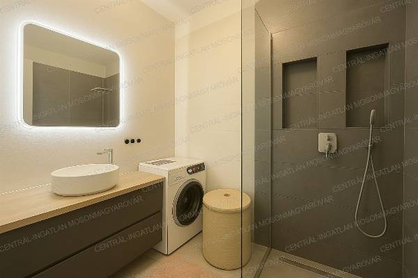 Mosonmagyaróváron, belvároshoz és a bevásárló központhoz közel kínáljuk ezt a sok beépített bútorral rendelkező, fiatal építésű társasházi lakást a 1. emeleten, nappali + 2 hálószobával és 2 erkéllyel. A lakáshoz a motoros kapuval zárt udvarban 2 db, saját kocsibeálló és közös tároló is tartozik amit a kínálati ár tartalmaz. A mosonmagyaróvári eladó, társasházi lakás jellemzői: -2020-as építés, szinte új állapot. két erkély! Déli-délnyugati fekvésű lakás! A nappaliból és a hálószobákból is erkélyre tudunk kilépni. -A lakás kiváló minőségű anyagokkal lett elkészítve. Minőségi bútorok, Bosch konyhagépek. A hasznos alapterület 55m2 (lakótér+erkély fele), a lakótér 51.91m2, erkélyek 5.49m2 + 1.14m2. -A lakásban több helyiségben beépített bútorok találhatóak. A szobákban a gardrób szekrények maradnak. Az előszobában beépített szekrény került. A fürdőben is egyedileg készített bútorok vannak beépítve. Pakolóhely van mindenhol. -A konyhabútorban beépített gépek találhatóak: mosogatógép, kerámia főzőlap, légkeveréses sütő, mikrohullámú sütő található. -Prémium minőség és a szinte teljes bútorozottság – ide csak költözni kell. -A lakáshoz két darab, dedikált kocsibeálló tartozik a zárt udvaron, továbbá közös tároló a földszinten. -A belvárostól és a lényeges bevásárlási lehetőségektől 600-700m-re lévő lakás, fiatal lakóövezetben található. Csendes környezet, gyorsan elérhető minden. -A fűtés és a meleg víz ellátás házközponti, kondenzációs gázkazánról működik. A fűtést minden helyiségben padlófűtés biztosítja. A fürdőbe még egy méretes törölközőszárítós radiátor is került. -Minden közüzemi fogyasztás egyedi méréssel, pontos, havi elszámolással működik a lakásban. Alacsony rezsivel, maximális komforttal. -A lakásban a hűtésre egy klíma van felszerelve az extrém meleg esetére. -15 cm-es hőszigetelés a homlokzaton, 3 rétegű üveggel szerelt nyílászárók, motoros mozgatású, alumínium redőnyök is találhatók, minden helyiségben szúnyoghálós ajtóval. Mindkét hálószobából és a nappaliból is ki lehet menni a teraszra. Praktikusan kialakított belső elrendezés, fürdő, wc külön található. Amennyiben ez az eladó, mosonmagyaróvári társasházi lakás, vagy bármely a kínálatunkban található társasházi lakás felkeltette érdeklődését keressen a megadott elérhetőségeken!