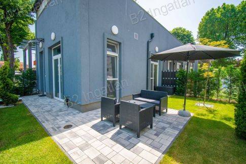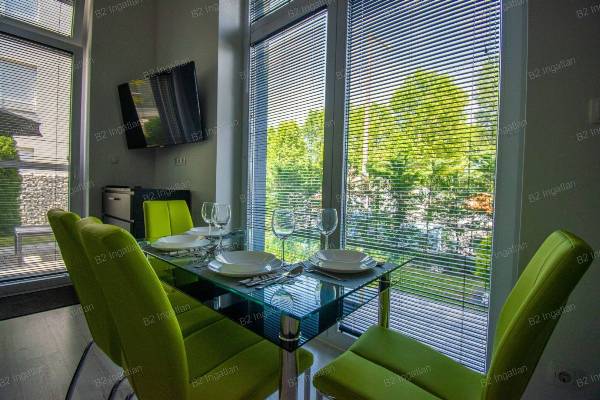 Eladásra kínálunk Balatonlelle szívében, a Móló Garden társasház földszintjén található, hangulatos, 36 m²-es, 2 szobás, kertkapcsolatos, teraszos apartmant, (autóbeállóval) amely rövidtávú szálláshelyként jelenleg is sikeresen üzemel. Az új építésű társasházban található ingatlan teljes bútorzattal együtt eladó, így akár azonnal folytatható az apartman működtetése, vagy saját nyaralóként is azonnal birtokba vehető. Az apartman elrendezése praktikus és modern: -világos, amerikai konyhás nappali kihúzható kanapéval -külön hálószoba franciaággyal -zuhanyzós fürdőszoba -klíma, smart tv, internet és teljesen felszerelt konyha A hangulatos, pázsitos kertkapcsolat ideális hely a pihenésre, reggeli kávézásokra vagy esti borozásokra. Az autóval érkezők számára privát parkoló biztosított. Melyet a vételár tartalmaz. A strand, a kikötő, az éttermek, kávézók és a vasútállomás mind néhány perc sétára elérhetők, így az ingatlan kiemelkedően jó lokációval rendelkezik. Főbb jellemzők: 36 m² lakótér 80 m² saját kert Saját gépkocsibeálló Teljes bútorzattal együtt eladó Jelenleg működő, rövid távú szálláshelyként üzemel Az üzemeltető igény esetén továbbvinné a működtetést Ez az ingatlan kiváló választás befektetőknek rövid távú kiadás folytatására, de saját nyaralónak vagy állandó otthonnak is tökéletes lehet Balatonlelle egyik legjobb helyén
