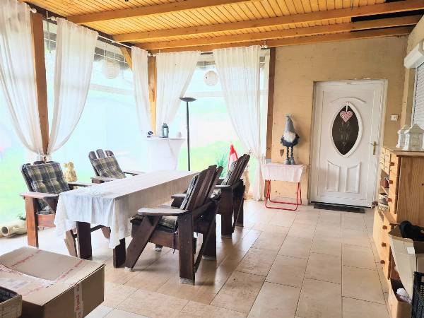 HAJDÚSÁMSON – DEBRECENTŐL 10 KM-RE RUSZTIKUS JELLEGŰ, MODERN CSALÁDI HÁZ SORHÁZAS BEÉPÍTÉSSEL ELADÓ INGATLAN JELLEMZŐI: 144 m²-es, amerikai stílusú családi ház, 664 m²-es telken Előkertes beépítés 3 szoba Gardróbos félszoba Amerikai konyhás nappali Fürdőszoba zuhannyal és káddal Külön toalett Dupla garázs Igényes, zárt betonkerítés Elektromos kapu Erdő mellett, csendes környezetben MŰSZAKI JELLEMZŐK: 2006-ban épült, beton alapra Ytong téglából Műanyag nyílászárók redőnnyel Dupla fafödém, cseréptetővel ellátva Fűtése gázcirkóról megoldott Teljes közmű: csatorna és vezetékes víz bevezetve KÜLÖNLEGESSÉGE: Az ingatlanhoz tartozik egy 30 m²-es, téliesített terasz. Autóval mindössze 3 percre található a bevásárlóközpont, mégis erdő melletti, nyugodt környezetben helyezkedik el. Az ingatlan a képeken látható teljes bútorzattal eladó. További részletes információért keressen bizalommal!