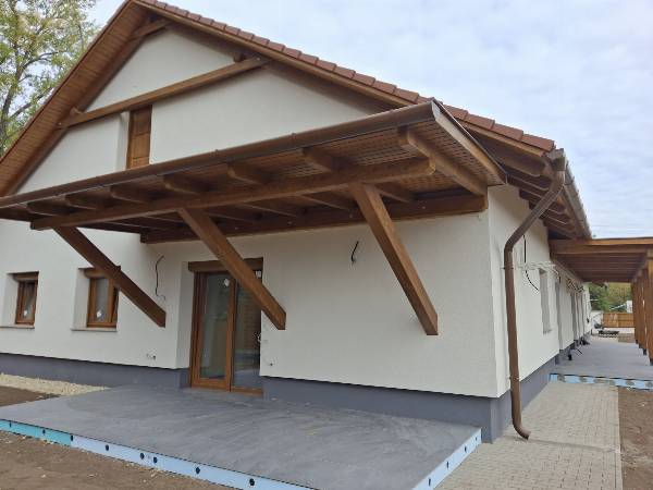 Egyszer volt, hol nem volt, zsákutca végén, erdei miliőben, tájba illeszkedő, madárcsiripelős házikó. Ha ilyen álomotthonra vágysz te is, siess, le ne maradj róla! Szolnokon, az Alcsiszigeten eladó egy 3 lakásos sorház, mely 1200 nm telken helyezkedik el és társasházként funkcionál. Az ingatlanok 80-83 nm-esek, egyszintesek. A téglaépítésű ingatlanban amerikai konyhás nappali, két hálószoba, külön fürdő és wc, háztartási helyiség, közlekedő és fedett terasz található. A 40 cm vastag falak 20 cm szigetelést kaptak, így a passzívház jellegű épület rezsije rendkívül alacsony. A belső falak is hang-és hőszigeteltek. A 3 rétegű, hőszigetelt, redőnnyel és szúnyoghálóval ellátott minőségi, fa hatású, műanyag nyílászárók színe tér vissza minden elemben. Kerámia burkolatok, konyhabútor gépek nélkül, szaniterek, szerelvények, lámpatestek és egy hűtő-fűtő klíma az árban. A fűtés 24 Kw-os kazánról padlófűtés. Világos, tágas terek fekvésének köszönhetően. A hátsó terasz déli, a középső keleti, az első északi tájolású. A villanyvezetékek álmennyezetbe építve. A háztartási helyiség nagysága miatt mosókonyhaként is használható. A kertben 3 gépkocsi beálló, de az új tulajdonosok mobilgarázst, mobil tárolókat is felállíthatnak. A ház arculata, homlokzata, a természetes anyagok mind a tervező kiemelkedő munkáját dicsérik. A közelben épülő óvoda, orvosi rendelő és szupermarket szintén az új lakók kényelmét szolgálják majd, a busz is pár percnyi távolságban, de fantasztikus étterem is karnyújtásnyira. A tervezett átadás jövő év eleje. A társasházra hitel felvehető, akár az új 3%-os is. A két szélső lakás ára: 95M Ft. A középső: 85M Ft. Tel: 06 70 7031213
