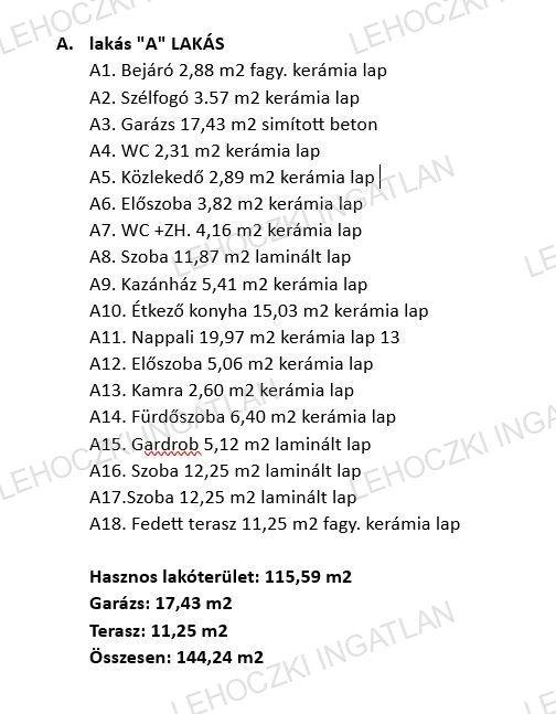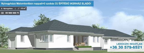 Nyíregyháza Malomkert nyugodt, csendes környezetében 133,02 nm-es, nappali - amerikai konyha + 3 szobás építés alatt álló ÚJ ÉPÍTÉSŰ IKERHÁZ 600 nm-es telken eladó! Jelen ajánlat az "A jelű" lakásra vonatkozik. Az ingatlan főbb jellemzői: Lakótér 115.59 nm + 17,43 nm garázs + fedett terasz 11,25 nm Porotherm 30 N+F tégla falazat, 15 cm-es homlokzati szigeteléssel ellátva, Fokozottan hőszigetelt, 3 réteg üvegezésű, 6 légkamrás műanyag nyílászárók, Födémszerkezete fa födém, 33 cm Ursa hőszigeteléssel, Tető héjazata antracit színű cserépfedés, Fűtése Saunier Duval Semiatek Condens 24 gázüzemű, kondenzációs, kombi fali kazánnal megoldott, szobákban klímával és radiátor hőleadókkal, többi helyiségben padlófűtéssel, szobákban laminált padló, a többi helyiségben kerámia burkolat, burkolatok, szaniterek, beltéri ajtók még választhatóak értékegyeztetéssel, Várható átadás: 2026 nyár A teljes készültség tartalmazza a kerítés és a járda, valamint a térkő burkolat kialakítását! Még a "B" jelű lakás is eladó: Lakótér 111,73 nm + 17,38 nm garázs + nyitott terasz 11,75 nm (1400 nm-es telek) 89.900.000,-Ft Díjmentes hitel, OTTHON START, Babaváró, Biztosítások ügyintézése! Amennyiben hirdetésem felkeltette az érdeklődését keressen bizalommal! Ügyfeleink számára minden szolgáltatásunk DÍJMENTES! Tel:+36 30 579 6521 Lehoczki Mihály Ingatlanközvetítő