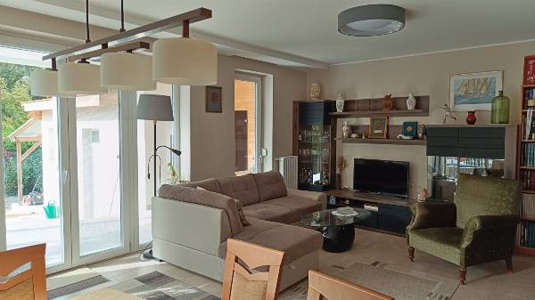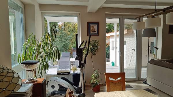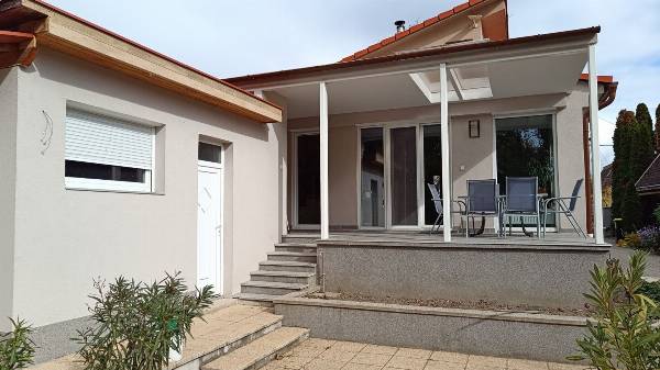 Eladó egy 2018-ban épült,104 m2 , téglaépítésű családi ház szaunával, kerttel, kiváló elhelyezkedéssel! Győr egyik kedvelt városrészében, Az ingatlan 521 m²-es, gondozott telken helyezkedik el, csendes, rendezett környezetben, a Belváros néhány perc alatt elérhető. A 2 szobás családiházban lehetőség van szükség szerint egy 3-dik szoba kialakítására. A ház nettó 104,3 m² alapterületű, jól átgondolt elrendezéssel: tágas nappali, hálószoba, konyha, étkező, fürdőszoba, külön WC, fedett terasz, szauna, fűtött pince és tároló tartozik hozzá. A kertre néző terasz kiváló helyszíne a pihenésnek, a beépített szauna pedig extra kényelmet nyújt a mindennapokban. A fűtésről Bosch gázkazán gondoskodik, padlófűtéssel és egy hangulatos, épített kandallóval kiegészítve. A modern fűtési rendszer nemcsak komfortos, hanem energiatakarékos is. A háromrétegű műanyag nyílászárók redőnnyel és szúnyoghálóval felszereltek, a nappaliban motoros működtetésűek. A belső terekben minőségi burkolatok találhatók – a hálószobában laminált padló, a többi helyiségben kopásálló kerámia. A konyha egyedi bútorzattal és Bosch gépekkel felszerelt, gáz főzőlappal, elektromos sütővel, mosogatógéppel és páraelszívóval. A lakásban több helyen beépített szekrény biztosítja a kényelmes tárolást, az étkező felett pedig bevilágító ablak kialakítására is előkészítés történt. A szeglemezes tetőszerkezetet 15 cm fújt hab és 5 cm kőzetgyapot szigetelés teszi hatékonnyá. A ház riasztórendszerrel ellátott, üvegszálas internettel rendelkezik, az áramellátás 3×16 amperes. Az udvar rendezett, falazott kerítésen díszes kovácsoltvas kapu és motoros kocsibeálló található. Az előkert térkövezett, dísznövényekkel és dekor kaviccsal kialakított, a hátsó kert füvesített, mely ideális pihenésre vagy konyhakert kialakítására. A telek 30%-os beépíthetősége lehetőséget ad a ház további bővítésére is. Ez az ingatlan tökéletes választás mindazoknak, akik korszerű, energiatakarékos és igényes otthont keresnek Győr közkedvelt városrészében, ahol a természet közelsége és a városi kényelem egyszerre adott.