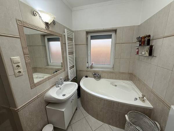 POMÁZON ELADÓ EGY IKERHÁZ-FÉL! A KÖRNYÉK: Pomázon, központi helyen, a H5-ös HÉV-től csak 12 perc sétára található. Könnyen megközelíthető rengeteg bevásárlási lehetőség, mint például a Lidl, vagy akár a SPAR szupermarket, melyek szintén 12 perc sétatávra helyezkednek el. A Mátyás Király Általános Iskola 15 perc, míg a Sashegyi Sándor Általános Iskola és Gimnázium 16 perc gyalog. A HÁZ JELLEMZŐI: -A ház hasznos alapterülete: 76,76 nm. -Plusz egy 19,43 nm-es fedett terasz. -Plusz egy 30 nm-es, fűtött garázs. -2013-ban épült, 30 cm vastagságú Porotherm téglából. -15 cm-es Dryvit szigetelést kapott. -A tető kerámia cseréppel fedett. -A nyílászárók 3 rétegűek, műanyagok, redőnnyel és szúnyoghálóval felszereltek. -A fűtésről egy kondenzációs gázkazán gondoskodik. -Az összes helyiségben padlófűtés került kialakításra. -A nappaliban megtalálható egy hűtő-fűtő klíma. -Kiépítésre került riasztó, valamint kamerarendszer is, 8 darab kamerával ellátva. FINANSZÍROZÁS: Banki finanszírozással is megvásárolható, melyben irodánk ingyenes tanácsadással áll rendelkezésükre! VEVŐINK RÉSZÉRE A KÖZVETÍTÉS DÍJTALAN! A hirdetésben szereplő adatok tájékoztató jellegűek!