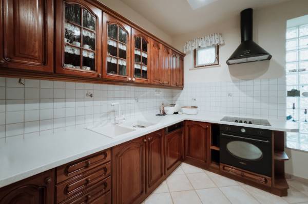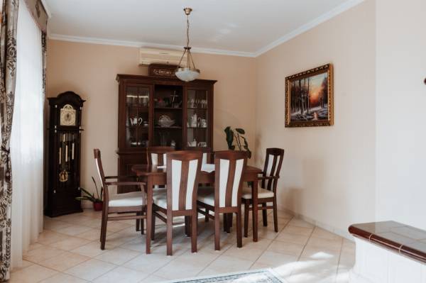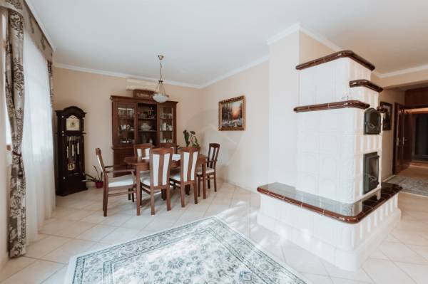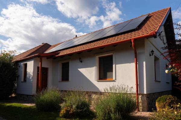 Eladó egy egyszintes, 150 m²-es újszerű családi ház, 24 m²-es terasszal, közvetlen kertkapcsolattal, Biatorbágy legjobb részén, fák és örökzöldek által védett, teljesen privát telekkel. Az ingatlan 2002-ben épült, folyamatosan karbantartott és felújított, A+ energetikai besorolású, 4 szobával + nappalival, prémium anyagokkal és gondozott kerttel várja új tulajdonosát. Főbb jellemzők: - Szobák: 4 + nappali, nappaliból közvetlen terasz- és kertkapcsolat - Fűtés: Viessmann kondenzációs kazán, padlófűtés a nappaliban, konyhában és fürdőben, szobákban radiátorok, külön termosztáttal szabályozhatók - Cserépkályha: nappaliban, a ház jelentős részét kifűti, éves faigény ~1 m³ - Nyílászárók: egyedi gyártású, 2 rétegű borovi fenyő fa ablakok, Milesi festéssel - Tető: Tondach cserép, napelem rendszerrel (szaldós elszámolású, igény szerint bővíthető) - Energetika: külső 10 cm grafitos hőszigetelés, lábazaton kézműves mediterrán kőburkolat, födém plusz 10 cm lépésálló hőszigetelés Konyha és burkolatok: - Beépített bútorok és gépesítés: sütő, légelszívó, mosogatógép - Szobák burkolata: bükk csaphornyos parketta - Konyha, nappali, fürdő és gépészeti helyiségek: olasz, 5-ös kopásállású kőburkolat - Terasz: 24 m², kihúzható árnyékolóval, DNY-i tájolás - Telek: 1113 m², kertész által tervezett és ültetett növények, fák, tuják, örökzöld bokrok – teljesen privát, szeparált kert - Veteményeskert: 80 m², elkerített, a telek végében - Fúrt kút: öntözésre és egyéb célokra - Garázs: különálló, 40 m² dupla beállású, 20 m² tárolóval, nyárikonyha/szauna kialakítási lehetőséggel Környék és elhelyezkedés: - Legjobb részén található, csendes, családi házas övezet - Aszfaltozott utca, sem a vasút, sem az autópálya nem hallatszik be - Buszmegálló néhány perc sétára - Minden a mindennapi élethez elérhető: boltok, szolgáltatások, iskolák Extra előnyök: - Riasztó és füstérzékelő rendszer kiépítve - Egyszintes, a bejárat mindössze 2 lépcsőfokkal - Sík telek, teljes intimszféra Ez a ház tökéletes választás mindazoknak, akik újszerű, prémium anyagokkal készült, kényelmes és világos otthont keresnek, ahol a kert privát, a terasz napfényes, a ház pedig minden modern kényelmet biztosít.