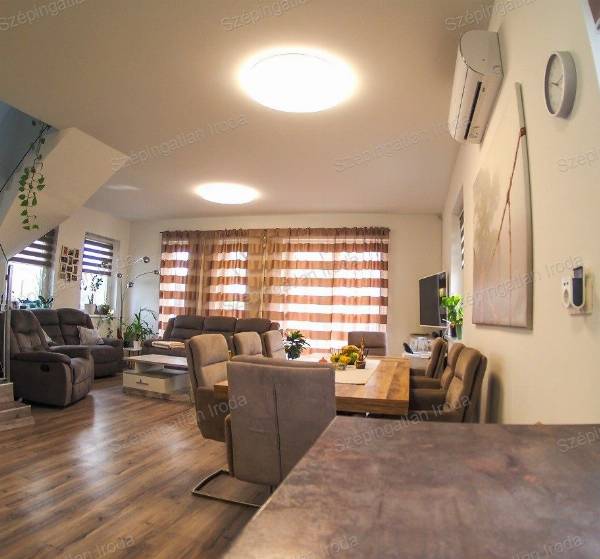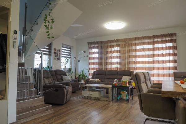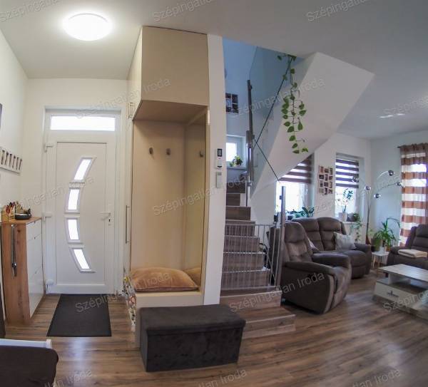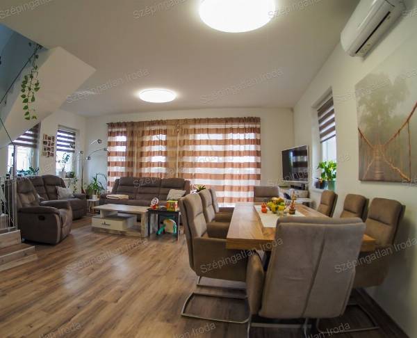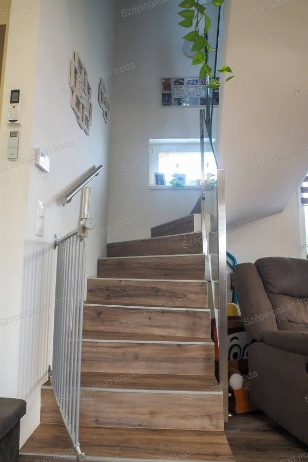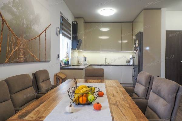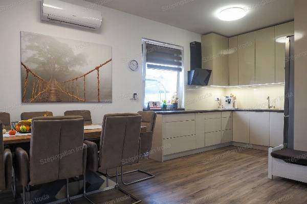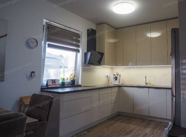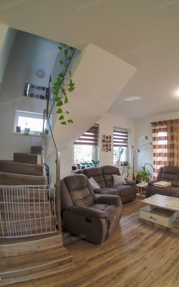 A Szépingatlan Iroda eladásra kínál Nagycenken, a Széchenyi lakóparkban, kulturált családi házas környezetben, egy 2021-ben kiváló minőségben megépített, praktikus elosztású, 2 szintes önálló családi házat. A telek 270m2, a ház hasznos alapterülete 93m2. A lakótérben amerikai konyha nappali, három hálószoba, 2 fürdőszoba és gardrób helyiség és udvari tároló található. Az épület tégla szerkezetű a fő falak 30 cm-es, a válaszfalak 10 cm-es válaszfal téglából készültek, az energetikai szabványnak megfelelően 18 cm-es homlokzati szigeteléssel. A külső nyílászárók műanyag szerkezetű, fokozott hőszigetelésű 3 rétegű üvegezésűek, belül fehér, kívül antracit színben, vakolható tokos redőnyökkel és szúnyoghálóval felszereltek. Az ingatlanba belépve az előszobából a nappali étkezőkonyha tágas terébe érkezünk Az egyedileg megtervezett, gépekkel jól felszerelt konyhabútor, valamint a számtalan okosan kitalált beépített bútorzat a lakás részévé vált, a vételűr részét képezi. A nappalihoz szervesen kapcsolódó 19 m2-es, déli tájolású fedett terasz és az udvar adja a lehetőséget, hogy tavasztól őszig a külső tér is egyenrangú része lehet az otthonnak. Az éjszakai élettér az emeleten ideálisan helyezkedik el, jól elkülönülve a közösségi tértől, mind közlekedőből nyílik. A fűtés és a meleg víz szolgáltatás energia takarékos gáz-cirkó kazánnal megoldott, padlófűtés rendszerrel. A nyári melegben hűtő-fűtő klíma biztosítja a ház kellemes hőmérsékletét. A háztartási gépek védelmére vízlágyító berendezés is beszerelésre került. A korszerű nyílászáróknak és a jó szigetelésnek köszönhetően az ingatlan rezsiköltsége rendkívül alacsonyan tartható. Az épületben alkalmazott műszaki megoldások, meleg és hideg burkolatok mind jó minőségűek, hibátlanok, egymással színben harmonizálnak. Műszakilag kifogástalan állapotban van az ingatlan. A kertben a kerti szerszámok tárolására egy 6 m2-es tároló található. A gépkocsik számára egy dupla férőhelyes térkövezett autóbeálló áll rendelkezésre közvetlen bejárattal a házhoz. A környezet rendezett, a szomszédok barátságosak, 2 gyermekes családoknak ideális otthon. Ha vásárláshoz hitelre van szüksége, hitelügyintéző Kollégánk segít Önnek megtalálni a piacon fellelhető legkedvezőbb hitelkonstrukciót. Ára: 110 mFt. Érd.: 003630 520 6055, szepingatlan.eva@gmail.com