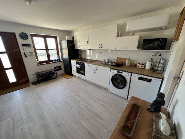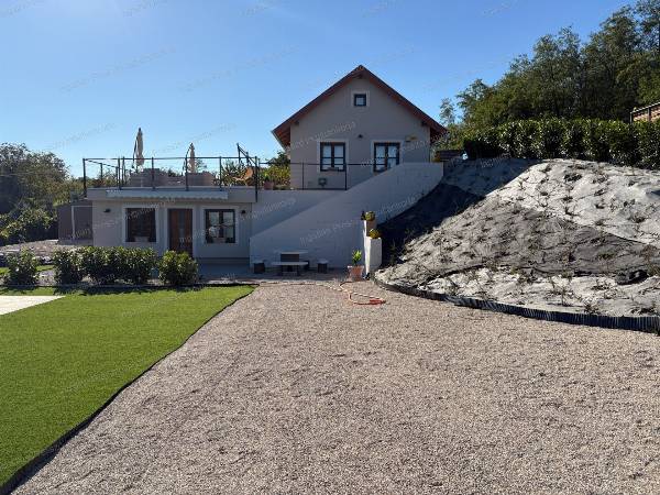Az Ingatlan Presszó eladásra kínál teljeskörűen felújított balatoni panorámás nyaralót Lesencefalun. Az Ingatlan Presszó által kínált lesencefalui nyaraló jellemzői: - teljeskörűen felújított - balatoni panorámás - 2 külön bejáratú, 75 m2-es ingatlan 2012 m2-es telken helyezkedik el - tégla épületek - 30 cm Porotherm tégla, szilikátos Baumit vakolat - 15 cm Austrotherm hőszigetelés - padló alatt 15 cm, a lapos tetőtben 20-25 cm PIR - teljes dréncsöves víz elvezető rendszer - tömör fa hőszigetelt bejárati ajtó, német hőszigetelt üveges fa ablakok hőtükrös sötétítő rolókkal - Wifis hűtő-fűtő 3,5 kw klíma - 2 körös wifis elektromos padlófűtés, falba épített szellőzők - külön elektromos hálózat, elektromos autó töltő kiépítés - távolból is irányítható riasztó rendszer - beépített konyhabútor, teljes felszereléssel - vízkezelő helyiség hydrofórral, 3 lépcsős vízszűrő rendszerrel, ipari vízkőtelenítővel, ami mindkét épületet ellátja - 73 m mély fúrt kút, 1 x 32 A áram - dupla emésztő rendszer(2 db 5m3-es), amelybe fent és lent is külön-külön megy a fekete(csak a WC-k) illetve a szürke szennyvíz - távolból is kezelhető elektromos kapu - 16 m3-es medence hűtő-fűtő hőszivattyúval, nagy homokszűrővel, takaró fóliával, teljes felszereléssel, takarító robottal 15 cm-es vasalt beton aljzaton - a teljes növényzetet programozható csöpögtető rendszer táplálja, - a murvás parkolók alatt mindenhol geotextil és aládolgozott felületek, - ipari kővel kirakott kocsilejáró Amennyiben az Ingatlan Presszó által kínált nyaraló, vagy bármely kínálatunkban található ingatlan felkeltette érdeklődését, hívjon bizalommal a megadott telefonszámon. Irodánk szakember ajánlásai igény esetén: ügyvéd, energetikai tanúsítvány, hitelügyintézés, értékbecslés, statikus, földmérő, építészmérnök, belsőépítész, villanyszerelő, víz-, gáz-, központi fűtés szerelő, kőműves, burkoló... Továbbiakban keresek eladó vagy kiadó családi házat-, lakást-, nyaralót-, gazdasági épületet-, raktárt-, csarnokot,- telephelyet,- építési telket-, zártkertet-, külterületet-, szántót-, legelőt-, erdőt, akár még tulajdoni hányadot is ügyfeleim részére, Veszprém vármegyében, Sümeg- és Tapolca környékén, valamint Balaton-felvidéken, Káli-medencében, Művészetek Völgyében, Balatonederics-Zánka között. Köszönettel, Bódis Péter ingatlanértékesítő Ingatlan Presszó Térjen be hozzánk egy ingatlanra!