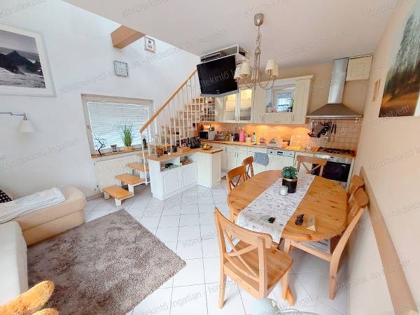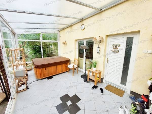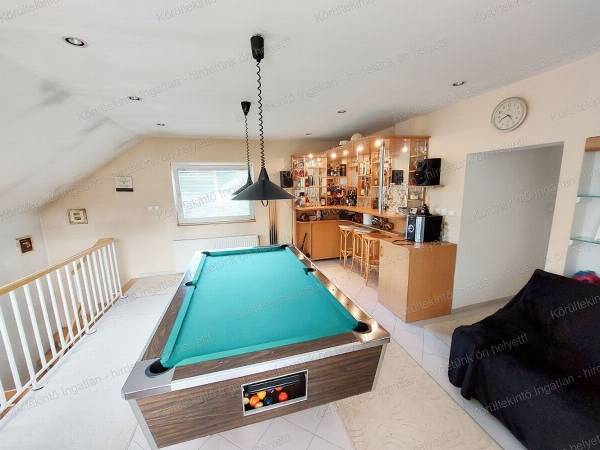 Referens: Elisher Nándor +36202449544 http://www.korultekintoingatlan.hu/adatlap.php?id=26HP5120 Pócsmegyer-Surány árvíztől mentes területén 1105 nm-es telken minőségi családi ház eladó. Város:Pócsmegyer Ingatlan jellege:Ház Ház típusa:Családi ház Nappalik száma:1 Egyéb szobák száma:3 Pince, tároló:Nincs Többgenerációs:Nem Hasznos lakóterület:150 m2 Telek területe:1105 m2 Állapot:Kiváló Közmű:Víz, Villany, Gáz, Csatorna Parkolási lehetőség:Garázsban Fűtés:gázkazán Pócsmegyer-Surány árvíztől mentes területén 1105 nm-es telken minőségi családi ház eladó. A klimatizált ház földszintjén kapott helyet az amerikai konyhás nappali, továbbá egy zuhanyzós fürdő. Az emeleten újabb nappali található biliárd asztallal, valamint két háló és egy kádas fürdő. A tetőtérben kapott helyet a wellness részleg, itt egy nagy szobában kondigép, szolárium, valamint szauna és zuhanyzó található. A ház fűtését gáz cirkó biztosítja. A telek két helyrajzi számon szerepel, ebből az egyiken (546 nm) salakos teniszpálya, a másikon (559 nm) a három szintes családi ház dupla garázzsal, kerti medencével, télikerttel, benne jacuzzival. A kert automata öntözőrendszerrel ellátott. Mindkét telek árvíztől teljesen mentes. Teljes kínálatunkat honlapunkon tekintheti meg: http://www.korultekinto.hu
