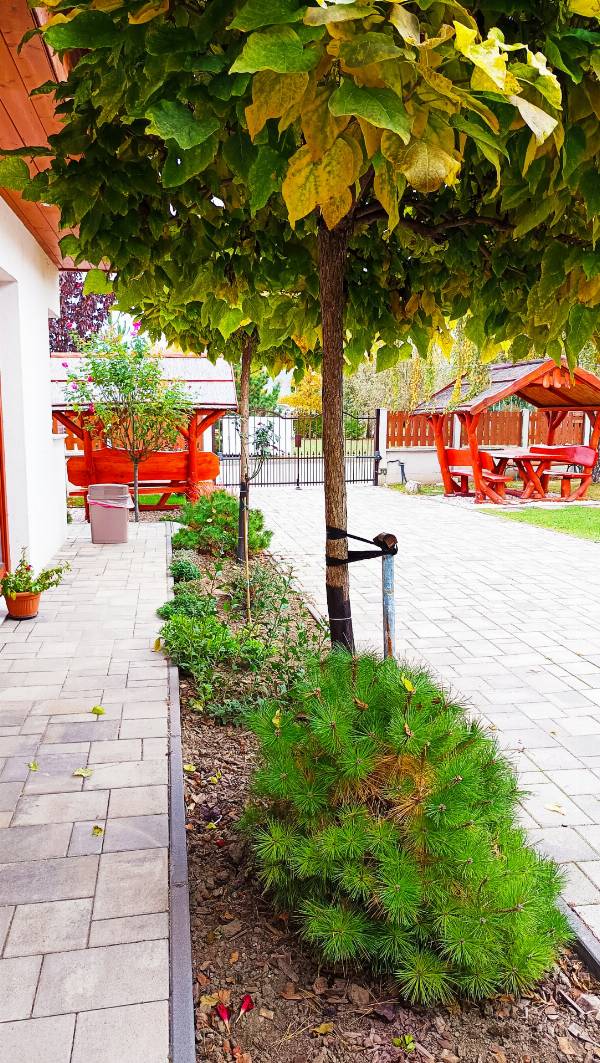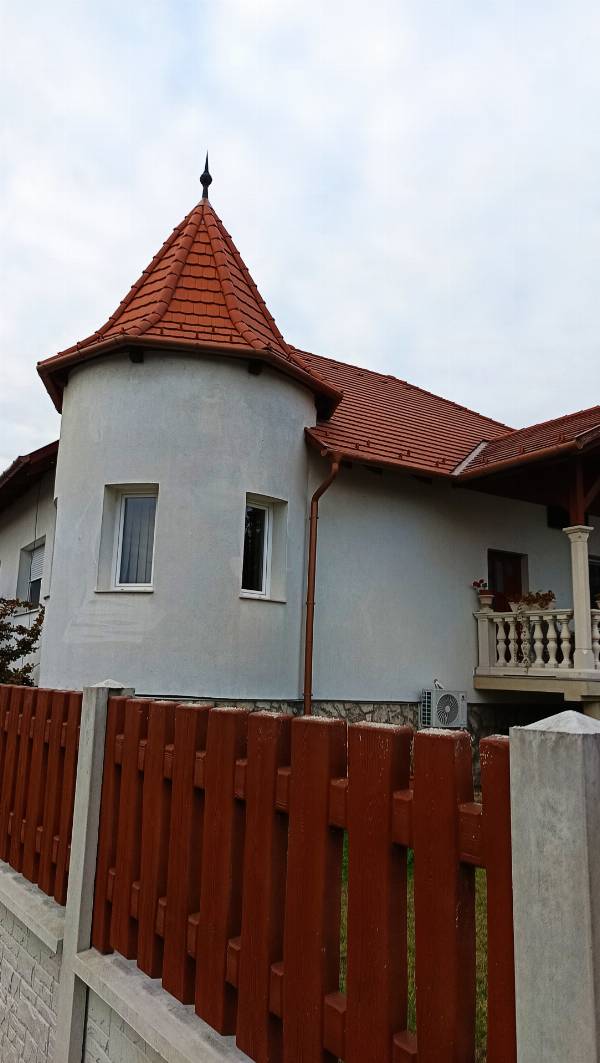 Tát egyik legkedveltebb részén, a Tátika tér közvetlen közelében eladó ez a ritkaságszámba menő, két különálló lakóépületből álló ingatlan, amely tökéletes választás többgenerációs családoknak vagy azoknak, akik egy tágas, igényesen felújított otthont keresnek, vagy otthoni vállalkozást működtetnek és ehhez egy önálló ingatlan lenne a legjobb választás. Az udvar kettéosztható, így saját telekrészekként lehet hasznosítani. A nagyobbik ház teljesen felújított, a kisebbik, ami jelenleg cukrászdaként üzemel 2022-ben épült. A nagyobbik ház 230 m²-es tégla épület, ebből 150 m² teljesen megújult belső térrel és egy 80 m²-es, még felújítandó szuterénrésszel rendelkezik. Jelenleg üzleti célra hasznosítják, de minden rendelkezésre áll benne lakáscélra is. Jelenlegi helyiségei: ügyfélfogadó (=előszoba), konyha, 2 kisebb és egy nagy méretű terem (=szoba), tágas folyosó, közös előtérrel dupla WC (itt könnyedén tusoló alakítható ki). A szuterénben egy cukrászműhelyként használt rész már felújított, a többi jelenleg is alkalmas tárolásra. A főingatlan 2017 és 2020 között szinte teljes újjászületésen esett át: új tetőszerkezet cserépfedéssel, korszerű nyílászárók, megújult gépészet és burkolatok, valamint 8 cm vastag külső hőszigetelés, kamerarendszer. A fűtésről kondenzációs gázkazán, radiátorok és két modern, GREE hűtő-fűtő klíma gondoskodik, az elektromos hálózat 3 x 32 A ipari áram, valamint 12 kW-os napelemrendszer, amely szaldós elszámolású és a 2 ingatlan együttes áramellátását biztosítja. Az udvarban található második, 2022-ben épült ház (70 m²) jelenleg egy működő cukrászda, de könnyedén átalakítható egy második, önálló lakóegységgé – így ideális megoldás lehet két generáció összeköltözésére vagy akár vendégháznak is. A második ház főbb jellemzői: A gondos tervezés és minőségi kivitelezés már az első pillanatban érezhető. Az épület kerámiabeton szerkezetű, 18 cm vastag kőzetgyapot szigeteléssel, míg a padlástérben 30 cm-es födémszigetelés gondoskodik a kedvező hőérzetről és az alacsony rezsiről. A háromrétegű üvegezésű, fa nyílászárók nemcsak esztétikusak, hanem kiemelkedően jó hő- és hangszigetelést is biztosítanak. Belül igényes burkolatok és minőségi szaniterek kerültek beépítésre, így a ház minden részlete a kényelmet és a tartósságot szolgálja. Az ingatlan közös elektromos hálózaton működik a főépülettel, a vezetékes vízellátás viszont külön mérőóráról történik. A fűtésről elektromos fali panelek és hűtő-fűtő klíma gondoskodik – a kiváló hőszigetelésnek köszönhetően a panelekre a téli hónapokban is csak minimálisan van szükség. Elosztása: egy nagy vendégfogadó tér, önálló helyiségben konyha, egy további ajtóval elzárt helyiség, ami szobaként hasznosítható, innen nyílik egy zuhanyzós fürdőszoba, külön férfi és női WC került kialakításra közös előtérrel. A 817 m²-es, parkosított kert igazi ékszerdoboz: három hangulatos nádfedeles kiülő, 2 állásos fedett kocsibeálló, több autó számára alkalmas térkövezett parkolófelület, gondosan ápolt zöldfelületek, térkövezett járda és elektromos kapu biztosítják a kényelmet. Az udvaron elektromos autóknak töltőállomás került kialakításra. A mindennapokhoz minden karnyújtásnyira van: bolt, piac, buszmegálló, minden a közelben. Irányár: 167 millió Ft Egy különleges dupla otthon, ahol a család minden tagja megtalálhatja a helyét!