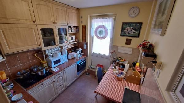 Pécs - Kertvárosban, a Diána téren, egy 50 m2-es 2 külön nyíló szobás erkélyes felújított 8. emeleti lakás panorámás kilátással eladó! A lakás egy szigetelt 10 emeletes épület 8. emeletén található, kelet-nyugati fekvéséből adódóan világos. Praktikus elosztású, szobái külön nyílnak, az egyikből egy erkélyre is kiléphetünk, ahonnan szép panorámás kilátás nyílik a Mecsekre. Ezen kívül nagy méretű konyhával, külön fürdővel és WC-vel rendelkezik. Mindkét szobába és a konyhába is jól pakolható, nagy tároló kapacitású beépített bútorokat építettek be. A konyhában található bútor beépített mosogatógéppel és hűtővel is rendelkezik. A lakás korábban teljes felújításon esett át, melynek során cserélve és bővítve lett a villanyhálózat, műanyag redőnnyel szerelt ablakokat építettek be, továbbá korszerűsítésre került a konyha és a fürdőszoba is, valamint új bejárati ajtó és új radiátorok kerültek beépítésre. A fűtést egyedi mérős távhő biztosítja, de mindkét szobában található klíma is. A lakáshoz tartozik egy kisebb és egy nagyobb közös tároló is. A parkolás ingyenes. A közelben boltok, üzletek, szolgáltatók, piac, orvosi rendelő és buszmegállók is megtalálhatóak. A belváros 15 perc alatt elérhető. A lakás ideális akár pároknak, egyedülállóknak és befektetési célra albérletkiadásra egyaránt. A lakás tehermentes.