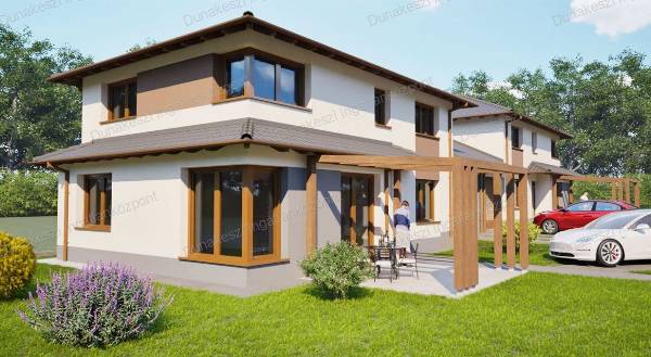 Dunakeszi egyik csendes mellékutcájában KIVÁLÓ minőségben épülő NAGYON MEGBÍZHATÓ ÉPÍTŐ által épített ikerházi lakások eladók. Új építésű ikerház prémium kivitelben – energiatakarékos, csendes, kényelmes! Eladó egy modern, új építésű ikerház, kiemelkedő műszaki tartalommal és korszerű megoldásokkal! A kivitelezés során a tartósságra, energiahatékonyságra és lakókomfortra egyaránt nagy hangsúlyt fektettek. Főbb jellemzők: Porotherm falazat, hő- és hangszigetelt szerkezet Háromrétegű üvegezésű nyílászárók Kültéri burkolatok: térkő, viacolor Prémium megjelenés: rozsdamentes korlát, színezett homlokzat, részben burkolólapos díszítés Fűtés-hűtés: Levegő-víz hőszivattyú (Mitsubishi Zubadan vagy azzal egyenértékű) Padlófűtés minden lakótérben Hűtés: fan-coil rendszer Fürdőben törölközőszárítós radiátor Burkolatok és szaniterek: 8.000 Ft/m² árkategóriájú padló- és falburkolatok Laminált parketta vagy padlószőnyeg a hálókban Zuhanyzó vagy kád (150.000 Ft-ig választható) Beépített WC tartály, modern szaniterek Elektromos rendszer: 1x32A általános és H-tarifás betáp Legrand kapcsolók, konnektorok Előkészítve: internet, TV, riasztó Motorizált, szigetelt garázskapu Belső terek: Fehér alapszínre festett falak, választható színnel Utólag szerelhető dekorfóliás beltéri ajtók (br. 100.000 Ft/db árig) Garázs és terasz kész burkolattal Telek, udvar: Rendezett udvar, alap tereprendezés Előregyártott acél kerítés lábazattal Kocsibeálló térkő burkolattal Ez az ingatlan ideális választás azoknak, akik új építésű, minőségi és energiahatékony otthonra vágynak. Minden előkészítve van ahhoz, hogy csak a bútorokat kelljen hozni! További műszaki dokumentáció és alaprajz elérhető kérésre.