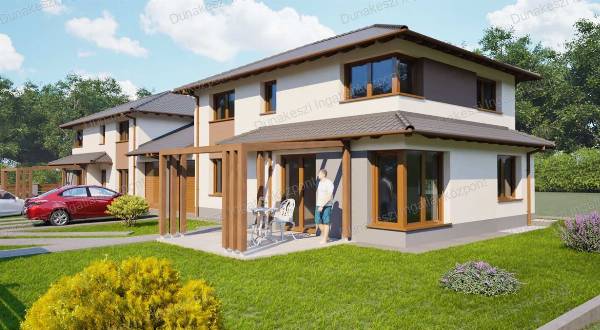 Dunakeszi egyik csendes mellékutcájában KIVÁLÓ minőségben épülő NAGYON MEGBÍZHATÓ ÉPÍTŐ által épített ikerházi lakások eladók.  Új építésű ikerház prémium kivitelben – energiatakarékos, csendes, kényelmes! Eladó egy modern, új építésű ikerház, kiemelkedő műszaki tartalommal és korszerű megoldásokkal! A kivitelezés során a tartósságra, energiahatékonyságra és lakókomfortra egyaránt nagy hangsúlyt fektettek. Főbb jellemzők: Porotherm falazat, hő- és hangszigetelt szerkezet Háromrétegű üvegezésű nyílászárók Kültéri burkolatok: térkő, viacolor Prémium megjelenés: rozsdamentes korlát, színezett homlokzat, részben burkolólapos díszítés  Fűtés-hűtés: Levegő-víz hőszivattyú (Mitsubishi Zubadan vagy azzal egyenértékű) Padlófűtés minden lakótérben Hűtés: fan-coil rendszer Fürdőben törölközőszárítós radiátor  Burkolatok és szaniterek: 8.000 Ft/m² árkategóriájú padló- és falburkolatok Laminált parketta vagy padlószőnyeg a hálókban Zuhanyzó vagy kád (150.000 Ft-ig választható) Beépített WC tartály, modern szaniterek Elektromos rendszer: 1x32A általános és H-tarifás betáp Legrand kapcsolók, konnektorok Előkészítve: internet, TV, riasztó Motorizált, szigetelt garázskapu  Belső terek: Fehér alapszínre festett falak, választható színnel Utólag szerelhető dekorfóliás beltéri ajtók (br. 100.000 Ft/db árig) Garázs és terasz kész burkolattal  Telek, udvar: Rendezett udvar, alap tereprendezés Előregyártott acél kerítés lábazattal Kocsibeálló térkő burkolattal Ez az ingatlan ideális választás azoknak, akik új építésű, minőségi és energiahatékony otthonra vágynak. Minden előkészítve van ahhoz, hogy csak a bútorokat kelljen hozni! További műszaki dokumentáció és alaprajz elérhető kérésre.