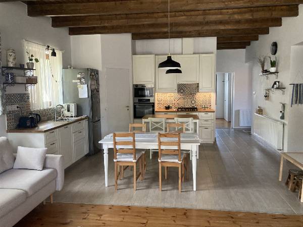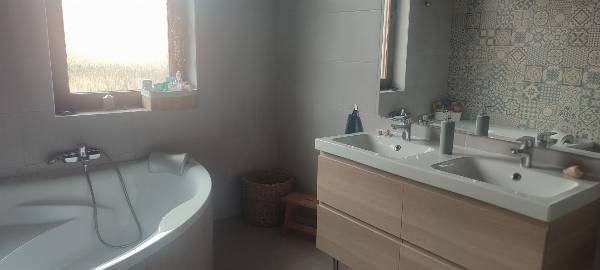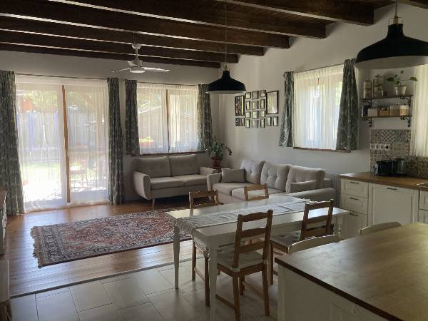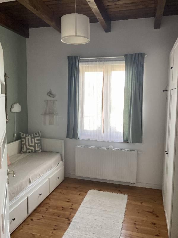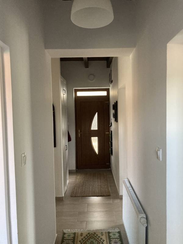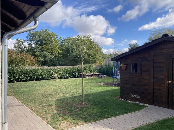 Modern, tágas családi ház eladó Erdőkertesen – természetközeli otthon prémium kivitelben. Erdőkertes egyik legkedveltebb, csendes utcájában, a Nyár utcában, eladó egy 2020-ban épült, nappali + 3 szobás, 101 m²-es családi ház, 27 m²-es fedett terasszal és gondozott, 650 m²-es kerttel – mindössze egy utcányira az erdőtől. A ház modern stílusban, 30 cm-es Porotherm téglából, 12 cm-es szigeteléssel, 3 méteres belmagassággal épült. A látszódó fagerendás fafödém természetes, meleg hangulatot teremt az enteriőrben. Főbb jellemzők: Amerikai konyhás nappali + 3 külön nyíló hálószoba 2 fürdőszoba + külön WC Háztartási helyiség, kamra, előszoba Gépesített, IKEA konyha (mosogatógép, mikró, gáztűzhely, villanysütő) 27 m²-es fedett terasz – tökéletes családi vagy baráti összejövetelekhez Fedett autóbeálló + 2–3 további parkolóhely 20 m²-es, bepolcozott kerti tároló Gondozott, parkosított kert gyümölcsfákkal, dísznövényekkel és sövénnyel Kerti csap, locsolómérő, vízelvezetés kiépítve Elektromos kapu, riasztó előkészítés Kandalló beépítéséhez kiépített kémény Műszaki tartalom: Prémium Immergas gázkazán, radiátoros fűtéssel 20 cm-es padlás hőszigetelés Gealan műanyag nyílászárók fa hatású kivitelben, szúnyoghálóval Hajópadló a szobákban és nappaliban Penészedésmentes, jól szellőző szerkezet Egyenes, jól használható hátsó kert Plusz előnyök: A ház saját részre épült, kiváló minőségű anyagokkal és jól átgondolt elrendezéssel Környék és elhelyezkedés: Erdő 1 perc sétára – tökéletes kutyasétáltatáshoz, túrázáshoz Csendes, átmenő forgalomtól mentes utca Játszótér, iskola, bolt, buszmegálló, sportolási lehetőségek a közelben Budapest 35 perc alatt elérhető. Ez a ház ideális választás családoknak vagy nyugalmat keresőknek, akik kompromisszumok nélkül szeretnének költözni egy igényes,minőségi otthonba. A természet közelsége, a minőségi kivitelezés és a praktikus elrendezés egyedülálló kombinációja.