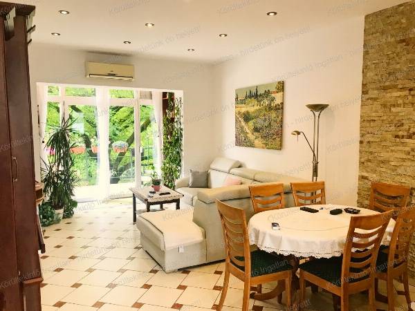 Bővebb információ és megtekintés: Kiss Krisztina +36708825055 III. Rómaifürdőn 3 lakásos, tégla építésű társasházban két darab, önálló bejárattal rendelkező lakás együtt eladó. A ház három szintes, a tárgyi ingatlan az első emeleten és a tetőtérben található. Az első emeleten 2019-ben felújított, nappali + 2 szobás, 75 m2-es lakás található konyhával, fürdőszobával, kamrával, előszobával, külön wc-vel. A lakásból közvetlenül egy DK-i tájolású 50 m2-es teraszra léphetünk ki. A lakás klímával ellátott. A külön külső lépcsőn megközelíthető tetőtéri lakás 53 nm-es, amerikai konyhás nappali, étkező, egy háló és fürdő elosztású. A lakás két erkéllyel is rendelkezik. A két lakás könnyedén össze is nyitható. Az épületben tároló, a ház kertjében kizárólagos használatú, 120 nm-es részen két autónak a parkolás megoldott.