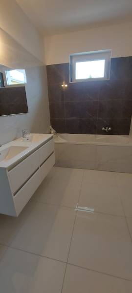 FENYVES-PARKVÁROS SZÍVÉBEN, VARÁZSLATOS TELKEN ÉPÜLŐ, TÁGAS CSALÁDI HÁZ, HŐSZIVATTYÚS FŰTÉSSEL, TERASSZAL, GARÁZZSAL! AZ INGATLAN 1 HÓNAP MÚLVA KULCSRAKÉSZ! Érden eladó egy 764 m2-es, telken épülő, ÚJ ÉPÍTÉSŰ, nettó 124,57 m2-es, 3 szoba + nappali! Az ingatlan ideális helyen épül, csend, nyugalom jellemzi a helyet! Fontos, hogy az ingatlanvásárlás hosszú távon is értékálló befektetés legyen! Kiváló adottságú telek előnyeit figyelembe véve alaposan átgondolt tervezés alapján épül az ingatlan benapozottsága optimális. A beépített anyagok minőségének és a korszerű technológiának köszönhetően az ingatlan energiatakarékos, gazdaságosan üzemeltethető. Rövid műszaki leírás: A ház vasalt, szigetelt beton sávalapra épül, 30-as Porotherm tégla tartófalakkal és 10-es Porotherm tégla, vakolt válaszfalakkal. A homlokzatra 15 cm-es dryvit, a lábazatra 10 cm-es xps, az aljzatra 10 cm-es lépésálló és a fa szerkezetű födémre 30 cm-es kőzetgyapot szigetelés kerül. A tető fedése Terran cseréppel. A fűtésről hőszivattyú gondoskodik, padlófűtéssel. A hideg és meleg burkolatok igény szerint választhatók 7.000 Ft / nm árig. Ajánlom mindazon 1-3 gyerekes házaspároknak, pároknak, nyugdíjasoknak, akik egy igazán kiváló, jól megközelíthető, jó adottságokkal rendelkező, csendes, nyugodt helyen szeretnék élni a mindennapjaikat. Ha szeretne kiszabadulni a városi körforgásból, de mégsem akar végleg elszakadni tőle, akkor a legjobb választás ez a környék, ahol az ébredés után saját teraszán kortyolhatja a reggeli kávéját, szippanthatja magába a friss levegőt és hallgathatja a madarak csicsergését. Amennyiben az ajánlatom felkeltette érdeklődését, kérem keressen telefonon. Szép napot és sikeres vásárlást kívánok Önnek!