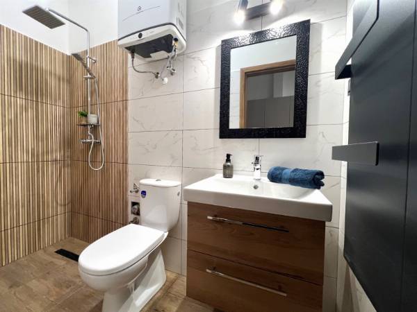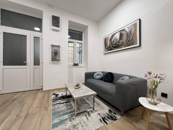 OTTHON START HITEL NEM VEHETŐ IGÉNYBE A VÁSÁRLÁSNÁL Megvételre kínálunk egy 46 m2-es, teljesen felújított amerikai konyhás nappali+1 hálószobás lakást. Az amerikai konyhás nappaliból nyílik a zuhanyzós fürdőszoba és a tágas 23nm-es hálószoba. A felújításról: A felújítás során a lakás mind gépészetileg, mind pedig esztétikailag fel lett újítva. A teljes villanyhálózat felújítása is megtörtént. A fűtésről minden helyiségben 3.5 kW-os Gree fűtésre optimalizált hűtő-fűtő klíma gondoskodik. A külső és a belső nyílászárók szintén cserélve lettek. Az ablakok háromrétegű hő-, és hangszigeteltek. A bejárati ajtó többponton záródó, masszív biztonsági ajtó. A beltéri nyílászárók tartós, karcálló CPL üvegbetétes ajtók. A hidegburkolatok szintén cserélve lettek. I. osztályú kerámia padló és falburkolat került beépítésre. Egyedi gyártású, beépített design konyhabútor gépesítve BOSCH kerámia főzőlappal, beépített elektromos BOSCH sütővel, SAMSUNG páraelszívóval, amelyek szintén a vételár részét képezik. A melegburkolat magas kopásállóságú, vízálló laminált parketta. A lakás minden ablaka elektromos alumínium redőnnyel van felszerelve. A lakás rugalmasan megtekinthető, a hét minden napján, előre egyeztetett időpontban. További felmerülő kérdéseivel forduljon hozzánk bizalommal. Ferge Imre
