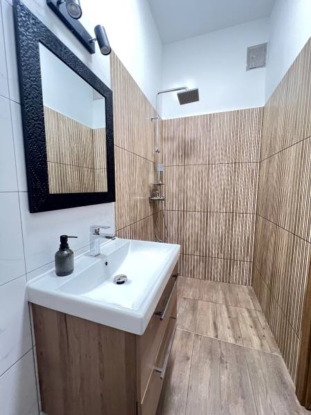 OTTHON START HITEL NEM VEHETŐ IGÉNYBE A VÁSÁRLÁSNÁL Megvételre kínálunk egy 34 m2-es, teljesen felújított garzon lakást. A lakás egy közel 30 m2-es amerikai konyhás nappali-hálóból áll, ahonnan nyílik a zuhanyzós fürdőszobája. A lakás a csendes belső udvarra néz dupla ablakkal, melynek köszönhetően világos. A felújításról: A felújítás során a lakás mind gépészetileg, mind pedig esztétikailag fel lett újítva. A teljes villanyhálózat felújítása is megtörtént. A fűtésről 5 kW-os Gree fűtésre optimalizált hűtő-fűtő klíma gondoskodik. A külső és a belső nyílászárók szintén cserélve lettek. Az ablakok háromrétegű hő-, és hangszigeteltek. A bejárati ajtó többponton záródó, masszív biztonsági ajtó. A beltéri nyílászáró egy tartós, karcálló CPL üvegbetétes ajtó. A hidegburkolatok szintén cserélve lettek. I. osztályú kerámia padló és falburkolat került beépítésre. Egyedi gyártású, beépített design konyhabútor gépesítve BOSCH kerámia főzőlappal, beépített elektromos BOSCH sütővel, SAMSUNG páraelszívóval, amelyek szintén a vételár részét képezik. A melegburkolat magas kopásállóságú, vízálló laminált parketta. A lakás minden ablaka elektromos alumínium redőnnyel van felszerelve. A lakás rugalmasan megtekinthető, a hét minden napján, előre egyeztetett időpontban. További felmerülő kérdéseivel forduljon hozzánk bizalommal. Ferge Imre