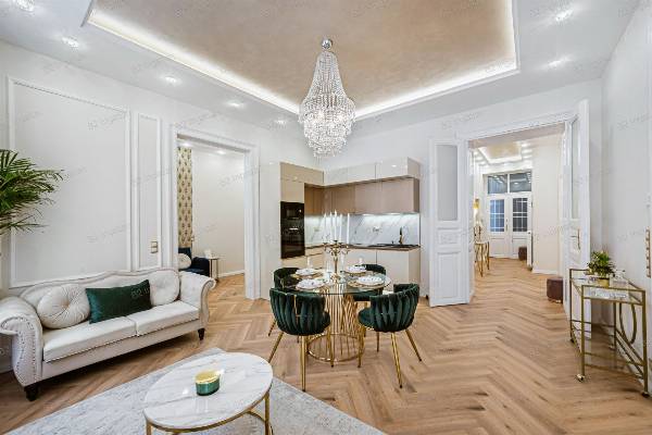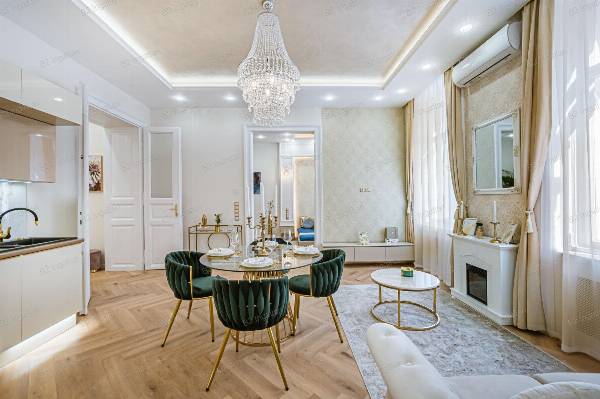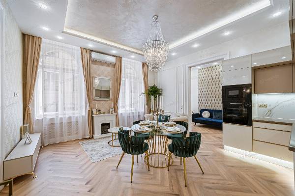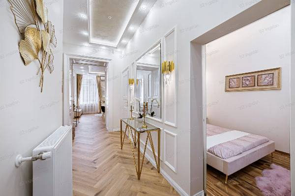 Budapest VI. kerületének egyik legkedveltebb részén, Belső-Terézvárosban, egy nyugodt, forgalomtól mentes utcában kínáljuk megvételre ezt a kivételes adottságokkal rendelkező, minőségi anyagokkal, magas színvonalon felújított lakást. Gyönyörű ház, liftes, zöld belső udvarral rendelkezik, melynek első emeletén található az ingatlan, amely tulajdoni lapon 83 nm, a valóságban 86 nm. Elrendezése: amerikai konyhás nappali, 3 különnyíló hálószoba, dolgozószoba, háztartási helyiség, valamint 2 fürdőszoba és 2 WC – az egyik hálóhoz külön zuhanyzó is tartozik. A lakás délkeleti tájolásának és nagy ablakfelületeinek köszönhetően egész nap világos, a tágas terek és a harmonikus színek pedig elegáns, modern atmoszférát teremtenek. A kivitelezés során a nagypolgári hangulatot ötvözték a modern luxus elemeivel, figyelemre méltó anyaghasználattal és dizájnnal. --- Főbb műszaki és esztétikai jellemzők * Teljeskörű műszaki és esztétikai felújítás * Teljes víz-, gáz- és elektromos hálózatcsere (3x23A áram) * Gázcirkós fűtés, radiátorral és padlófűtéssel kombinálva * 2 db hőszivattyús Gree 3,5 kW klíma * Elektromos cirkó kiállás * Hőszigetelt, felújított nyílászárók savmart üveggel, polírozott réz kilincsekkel * Bosch beépített gépek (sütő, főzőlap, mikro, mosogatógép) * Gránit mosogató, Wellis szaniterek, Geberit WC tartály és nyomólap * Legrand kapcsolók egyedi keretekkel * DSC riasztórendszer szünetmentes tápegységgel * 60x120 cm-es prémium burkolatok mennyezetig * OIKOS olasz strukturált falbetétek, díszfestékek * Álmennyezetbe épített Bluetooth hangszóró * Okosotthon rendszer mobilról vezérelhető fűtés és klíma * A vételár tartalmazza a képeken látható teljes bútorzatot és dekorációt (Zara Home, Rituals kiegészítők) A lakás Airbnb engedéllyel rendelkezik, így befektetési célra is kiemelten alkalmas. --- Környék és infrastruktúra: A lakás elhelyezkedése **ideális mind lakhatásra, mind befektetésre. Pár perc sétával elérhető a Nyugati pályaudvar, az Andrássy út, az Oktogon és a Teréz körút, valamint több egyetem (pl. ELTE, Képzőművészeti Egyetem, Metropolitan Campus) is könnyen megközelíthető. Kiváló a tömegközlekedés: a 4-6-os villamos, az M1 metró, a 9-es busz és több trolivonal is néhány perc alatt elérhető. A környéken **számos kávézó, étterem, pékség, gyógyszertár, fitneszterem és bevásárlási lehetőség található (pl. Westend City Center, Spar, DM, Rossmann). A közelben játszóterek, parkok és kulturális intézmények (pl. Operaház, Zeneakadémia, Hunyadi tér) teszik teljessé a belvárosi életérzést. Az ingatlan Tehermentes és Azonnal birtokba vehető. Kérem hívjon bizalommal