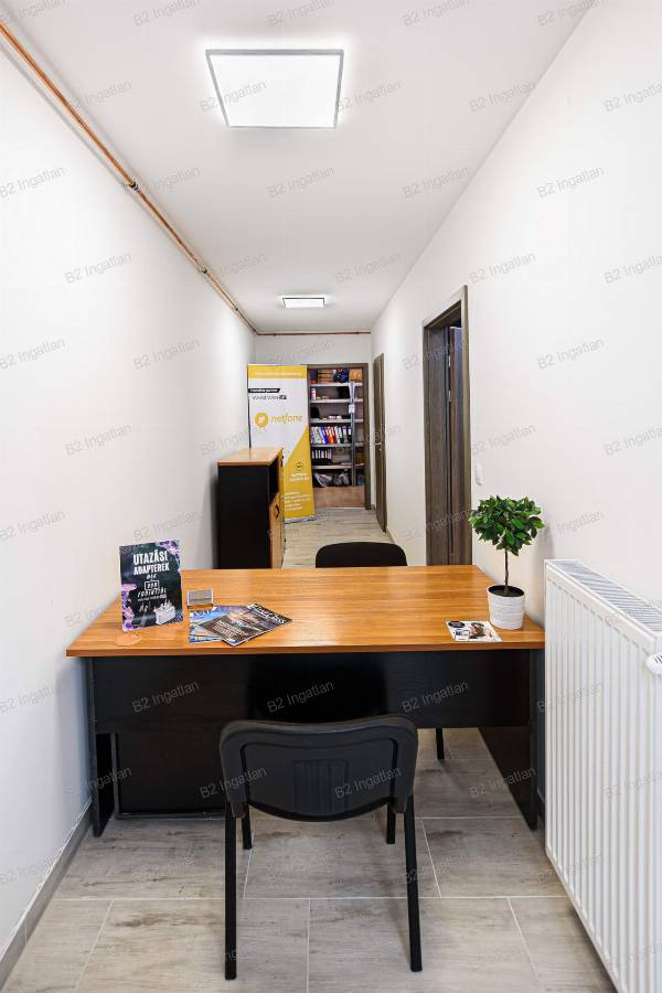 Eladó egy ÚJ ÉPÍTÉSŰ társasház 52 m²-es iroda/üzlethelyiség! Budapest IV. kerületének csendes, kertvárosi környezetében, egy 2022-ben épült, modern társasház földszintjén. Az ingatlan közvetlen utcai bejárattal rendelkezik, így ügyfelek és munkatársak számára egyaránt könnyen megközelíthető**. A helyiség két külön bejárattal és jól szeparálható térrel rendelkezik, ami lehetővé teszi többfunkciós hasznosítását – irodaként, rendelőként, stúdióként vagy bármilyen szolgáltató tevékenységre is ideális. A nagy méretű nyílászáróknak köszönhetően a belső tér világos, barátságos és inspiráló munkakörnyezetet biztosít. Az ingatlanhoz tartozik egy saját, zárt udvari gépkocsi-beálló, amely a vételár részét képezi. További előnyök: * Tehermentes, azonnal birtokba vehető * Korszerű épület, alacsony fenntartási költségek * Nyugodt, mégis jól megközelíthető lokáció * Opcionálisan a működő vállalkozás is megvásárolható az ingatlannal együtt Kiváló választás mindazok számára, akik modern, frekventált, mégis kertvárosi környezetben keresnek reprezentatív irodát vagy üzlethelyiséget Érdeklődés esetén hívjon bizalommal, és egyeztessen időpontot a megtekintésre!