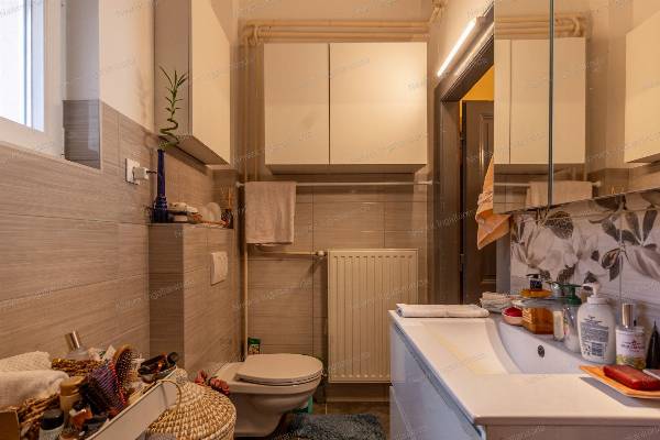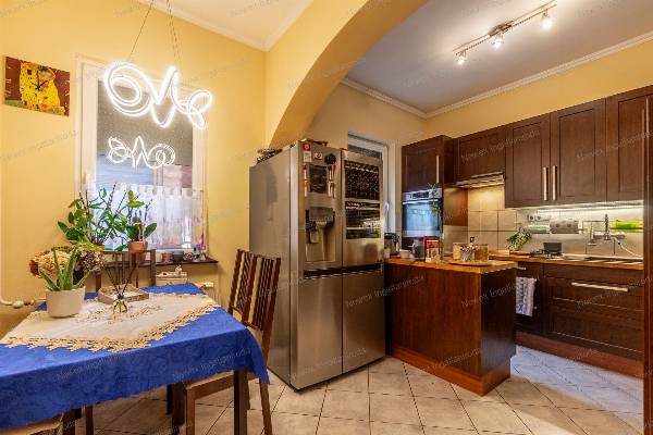 Rákoscsaba-Újtelep csendes, rendezett utcájában eladó egy kiváló adottságokkal rendelkező, folyamatosan karbantartott, téglaépítésű és szigetelt családi ház. Az ingatlan első felújítása és bővítése 1998-ban történt, azóta pedig több alkalommal korszerűsítették, legutóbb 10 éve, amikor a kazánt és a nyílászárókat is cserélték, valamint elkészült a szauna és a gyönyörű kandalló is. A ház elrendezése kimagaslóan praktikus, akár két generáció számára is kényelmes, jól elkülöníthető életteret biztosít. A földszinten amerikai konyhás nappali található, amelyet egy impozáns kandalló tesz igazán hangulatossá. Innen nyílik a teljesen zárt télikert, ahol a szauna kapott helyet, valamint a teraszra is innen jutunk ki. Ezen a szinten egy nagyméretű dolgozószoba, egy frissen felújított fürdőszoba WC-vel, közlekedő, mosókonyha és kamra is rendelkezésre áll. A dolgozószobából vezet a lépcső az emeletre, ahol második nappali, két hálószoba, valamint egy tágas, sarokkádas fürdőszoba található. A nappaliból és az egyik hálóból is közvetlen kijárat nyílik az erkélyre. Az épület korszerűsítése során hőszigetelt műanyag ablakok kerültek beépítésre redőnyökkel, a homlokzat pedig 10 cm-es szigetelést kapott. A tető szigetelt, cserépfedéssel. A fűtést modern gázkazán biztosítja lapradiátorokkal, emellett fatüzelésű kandalló és hűtő-fűtő klíma is rendelkezésre áll, így az ingatlan fenntartási költségei kifejezetten kedvezőek. A gondozott kertben hatalmas fedett terasz, valamint szalonnasütő-bográcsozó teszi lehetővé a családi és baráti összejöveteleket. A garázs egy autó számára biztosít helyet, a beállón további két gépkocsi parkolhat. A közlekedés kiváló: vonattal és busszal is könnyedén elérhető a főváros. A környék igazi kertvárosi hangulatot áraszt, biztonságos, jó szomszédsággal és jól működő infrastruktúrával. Bankfüggetlen hitelügyintézőnk segít a legkedvezőbb konstrukció kiválasztásában. Várom hívását!