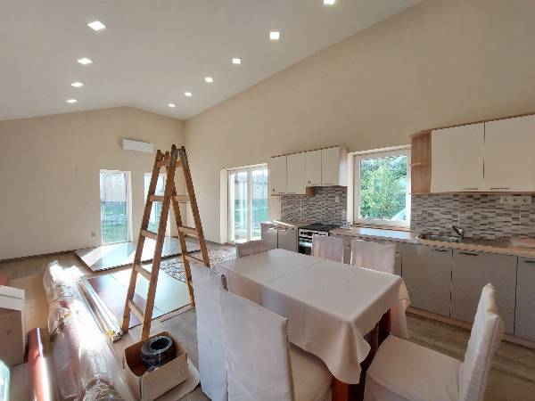 Mórahalmon, szép környezetben, Mátyás király körúton földszintes, 85 nm lakóterületű, amerikai konyhás nappali+2 szobás, nagy teraszos (+ 16 nm), egyedi fűtésű (kondenzációs kazán padlófűtéssel), klímás, hőszigetelt, BÚTOROZATLAN téglaépítésű családi ház (2023-as építés) 950 nm-es telken hosszú távra kiadó! Érdemes megnézni! Részletekről érdeklődni nálam tud! Ha nem tudom azonnal fogadni hívását, visszahívom, türelmét előre is köszönöm! Megtekinteni kizárólag előzetesen (telefonon) egyeztetett időpontban lehetséges!!! Az ingatlan jellemzői: - amerikai konyhás nappali + 2 szoba: akár kiscsaládok számára is jó választás lehet, - egész értékű hálószobák: 15-16 nm-es, nagyméretű szobák, így akár 2 gyermek is kényelmesen osztozhat 1 szobán, - nagyméretű terasz: nappaliból nyíló kb. 16 nm-es terasz ideális színtere lehet családi vagy baráti rendezvényeknek, - háztartási helyiség: 5 nm-ének köszönhetően kényelmesen elférnek a gépek, háztartási eszközök és a szárító is egy szeparált helyiségben, - magasabb belterű nappali: emelt belterű, de még gazdaságosan kifűthető nappali egyedi hangulatot kölcsönöz az egész háznak, - lakóterület 85,11 nm + 15,9 nm fedett terasz + 3,3 nm belépő, - részben gépesített: konyhabútorral, tűzhellyel és klímával felszerelt otthon, ide csak a bútorait kell hoznia, - bútorozatlan, - modern anyagok, kis rezsi: az ingatlan homlokzata szigetelt (15 cm), 3 rétegű hőszigetelt műanyag nyílászárókkal ellátott, valamint Baxi kondenzációs kazánjának (végig padlófűtés) köszönhetően a rezsi alacsonyan tartható, - 950 nm-es telek: kényelmes méretű telek, mely méretéből adódóan kis veteményesnek, vagy virágokkal, parkosítással pihenőkertnek is teret biztosít! A ház ÚJSZERŰ állapotú, így CSAK ÖNMAGÁRA ÉS KÖRNYEZETÉRE IGÉNYES, megbízható (és kaucióval is rendelkező) bérlőjelöltek jelentkezését várom! A tájékoztatás nem teljeskörű. A fotók széles látószögű géppel készültek! További tájékoztatásért forduljon hozzám bizalommal! VÁROM HÍVÁSÁT! (Ha nem tudom azt azonnal fogadni, visszahívom.)