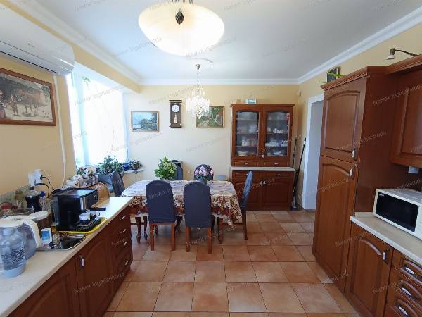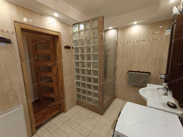Eladásra kínálunk egy impozáns, 272 m²-es, 3 szintes, teljes körűen felújított családi házat, amely 995 m²-es, gondosan parkosított telken helyezkedik el. Az ingatlan 1996-ban Porotherm téglából épült, a tulajdonosok az elmúlt 4 évben teljes felújítást végeztek, így egy modern, energiahatékony és azonnal költözhető otthon várja új lakóit. Főbb jellemzők és felújítások: - Újra lett lecezve és párazárófóliázva a meglévő BRAMAC tetőrendszer - 10 cm-es külső Nikecell szigetelés, valamint 30 cm kőzetgyapot a padlásfödémen - Új, 3 rétegű műanyag ablakok szúnyoghálóval, gyönyörű új beltéri ajtók - 6 db ÚJ 3,5 kW-os hűtő-fűtő klíma - 10 kW-os napelemrendszer beépített akkumulátoros energiatárolóval - Új Hajdú kondenzációs gázkazán, amely a melegvíz-ellátást is biztosítja - Mindkét fürdőszoba megújult zuhanykabinokkal, illetve hidromasszázs káddal - Riasztórendszer áll rendelkezésre a biztonság érdekében - A teljes villamos hálózat rézvezetékes - Vegyes tüzelésű kazán, illetve egy hangulatos kandalló is rendelkezésre áll Helyiségek elosztása: Földszint: 2 szoba, 33 m²-es nappali, nagy konyha-étkező, előszoba, közlekedő, gardrób, modern fürdőszoba, 40 m2 TERASZ Tetőtér: 4 szoba, társalgó, fürdő (zuhanyzó + hidromasszázs kád + WC), szauna, külön WC, 2 erkély Alagsor: pihenőszoba, konyharész, WC, kazánház, fűtött garázs akár 3 autó számára, elektromos garázskapu Külső jellemzők: - Parkosított, virágzó kert gyümölcsfákkal, dísznövényekkel, öntözőrendszerrel - Lézervágott alumínium kerítés és korlátok - modern és elegáns megoldás - Térkövezett udvar, kerti tároló, fúrt kút Kiváló elhelyezkedés: - Nyugodt, zöldövezeti környezet, közel a Görömbölyi pincesorokhoz - Buszmegálló kb. 150-200 méterre - Bevásárlóközpontok (Pesti úti üzletsor, Auchan) mindössze 2 km - Miskolc-Tapolcai Barlangfürdő és Ellipsum Fürdő, a Bükk kb. 2,5 km távolságra Ez a ház kivételes adottságú, gondosan karbantartott, és minden részletében igényesen megújított. 2 generáció együttélésére, nagycsaládoknak, illetve akár vállalkozásra is ideális. A bútorzat és a szauna megegyezés szerint maradhat. Amennyiben felkeltettem az érdeklődésedet, úgy kérlek hívj örömmel megmutatom Neked ezt a GYÖNYÖRŰ, ENERGIAHATÉKONY GYÖNGYSZEMET!