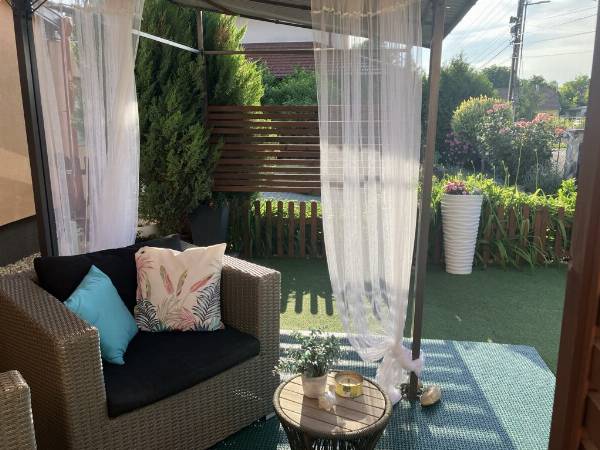 Komárom egyik közkedvelt, frekventált, csendes, zöldövezeti részén megvásárolható egy teljes körűen felújított, minden igényt kielégítő, exkluzív, otthonos, elegáns, nagy belmagasságú, napkollektorokkal felszerelt, wellnessel, gondozásmentes mediterrán kerttel rendelkező családi ház. Ebben az ingatlanban mindent megtalálható, ami a kényelmet, pihenést és a nyugodt otthoni légkört szolgálja. Az ingatlanban 3 nagybelmagasságú (3,3 m) szoba található, ami laminált padlóburkolatú, nagyméretű konyha-étkező, korszerű, modern fürdőszoba, szauna, masszázs medence, masszázsgép biztosítja a felfrissülést, szibériai vörösfenyővel burkolt kerti szoba, ami minden évszakban használható, a házhoz pince és 30 nméteres garázs is tartozik, ami alkalmas 2 elektromos autó töltésére is. 2018- ban az ingatlan teljes körű felújításon esett át: új víz-, villany- és csatornahálózat, kívül-belül modernizált rendszerrel, 20 cm-es szigeteléssel, új tetőszerkezettel és műanyag nyílászárókkal lett felszerelve. Rövid sétával bank, iskolák, óvodák, üzletkomplexum, orvosi rendelő, patika, önkormányzat, határ (2 km) elérhető. A környék híres gyógyfürdője – Komáromi Termálfürdő – egész évben feltölt. – Gazdag kulturális élet: színház, fesztiválok, Vizi sportok, Duna-parti séták – Komárom és környéke több, mint lakóhely: egy élmény. – Golfozás? Igen! 20 km-en belül golfpálya is vár. – Teniszpálya két utcányira található. – Határon átívelő kerékpárút Autópálya felhajtó 8 perc, több repülőtér egy órán belül elérhető. Beszámíthatóak a következő városokban eladó ingatlanok: Győri lakás: Ady város, Nádorváros, Jancsifalu, 40-45 millió, 1+2 fél szobás panellakás. Tata : Belváros, Tó környék, 60nméteres 1+2 fél szobás lakás Pest : Sósfürdőben, Pesterzsébeten új lakás, Csepel Puli sétány, Nyuszi sétány 1+2 fél szobás lakás, Erdősor. Budafok/Tétény/Háros 4 emeletes házban panellakás, 11. kerület Szerémi út, Zuglóban, Herminamező