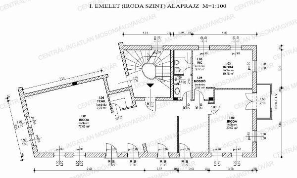 KIZÁRÓLAG A CENTRÁL-INGATLAN KÍNÁLATÁBAN! Mosonmagyaróvár magyaróvári városrészén, frekventált helyen kínáljuk ezt a 127m2 irodai területtel rendelkező ingatlant. Igény esetén az irodához további 36m2 tárgyaló és szerverhelyiség bérelhető, használható. - A belváros szélén lévő épület könnyen megközelíthető. A társasházhoz tartozó területen 6db saját parkoló van, de további ingyenes parkolási lehetőség is van itt, ha erre szükség van. -Jelenlegi kialakításában az első emeleten 3-4 iroda helyiség kapott helyet, nagy előtérrel, mosdóval és kis tálaló konyhával. A legnagyobb irodarész 77m2-es, igény esetén ez is több önálló irodára osztható. -Az ingatlan kiválóan alkalmas irodai szolgáltatásra, teljes bútorzattal bérelhető. Iroda indításához nem kell semmilyen beruházást végezni. Hosszú távú bérleti szerződéssel, átalakítással egészségügyi létesítménynek, szépségszalon működtetésére is alkalmas. - A bejárat az utcafrontról, reprezentatív lépcsőházból megoldott. A társasházban üzletek, irodák és lakások vannak kialakítva. - Kialakítható ügyfélváró, különböző funkciójú helyiségek. A válaszfalak változtatásával más belső elosztás is kialakítható. - Az iroda reprezentatív helyen található. Saját vállalkozás működtetésében gondolkodóknak remekül használható az ingatlan. - Az épület téglafalazatú, kiváló statikai, szerkezeti állapotban van. A fűtést házközponti gázkazán biztosítja, padlófűtésen keresztül. Alacsony rezsivel működik az ingatlan. Minden helyiségben klímaberendezés található. - Internet, telefon is rendelkezésre áll, belső informatikai hálózat kiépített. Szolgáltatói szerződés után, azonnal működik. Szerverközpont is van kialakítva. - A terület közvetlenül megközelíthető autóval, gyalogosan, kerékpárral, tömegközlekedéssel is. Autók parkolására a társasház saját parkolóiban van lehetőség, 6db hely biztosított. Az ingatlan környezete térkövezett, rendezett. További ingyenes parkolók a közelben. - A feltüntetett 280.000.-Ft+Áfa bérleti díj a 127m2-es teljes iroda bérlésére vonatkozik. Minimum 2 éves bérleti szerződés vállalásával bérelhető. A bérleti szerződés biztosítékaként 2 hónap kaució szükséges. Ez egy ritka lehetőség vállalkozás működtetéséhez, hosszú távú üzemeltetés biztosított. Időpont egyeztetés miatt várom jelentkezését a megadott elérhetőségeken.