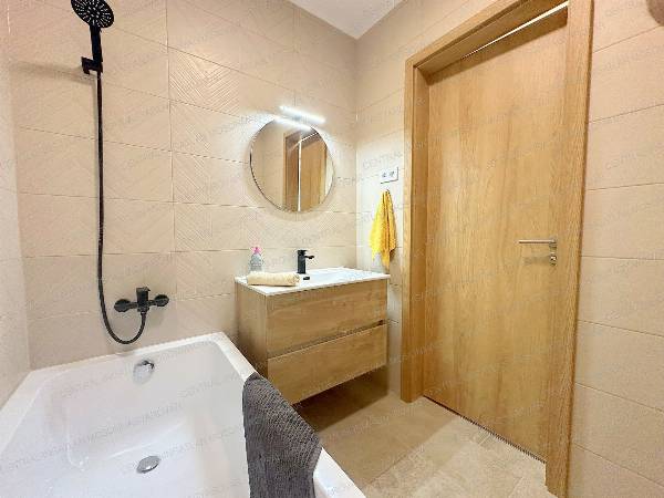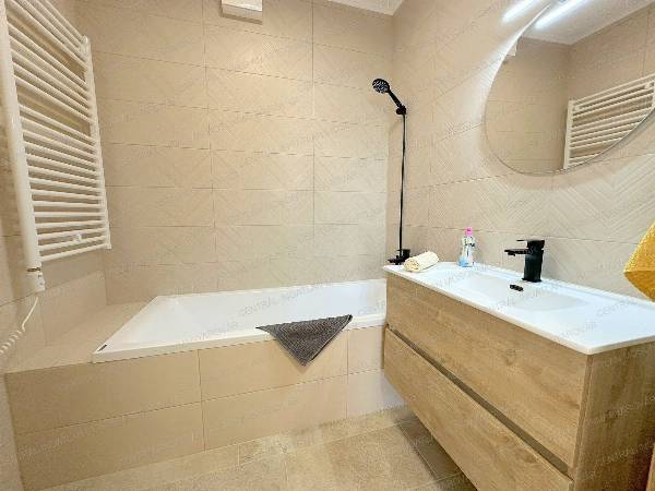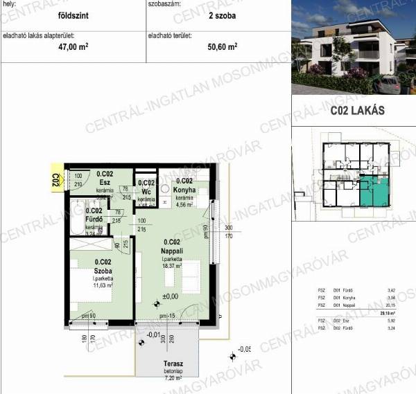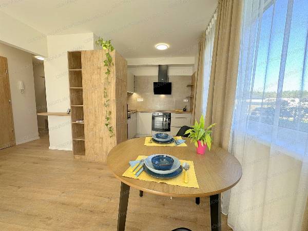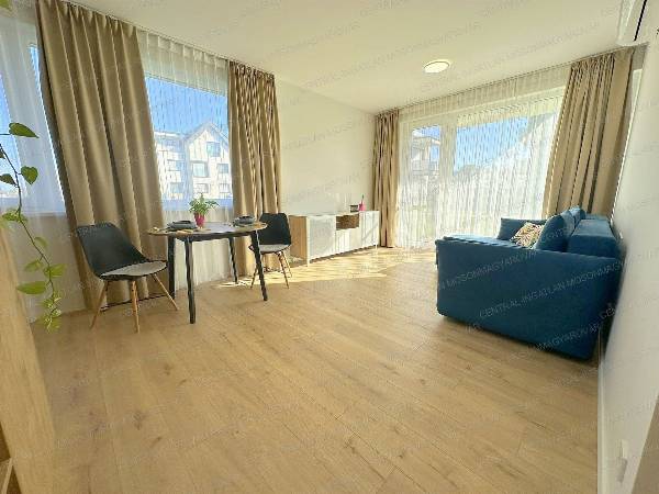 KIZÁRÓLAG A CENTRÁL-INGATLAN KÍNÁLATÁBAN! Mosonmagyaróváron, Gyöngyös Villaparkban, új építésű lakás várja bérlőjét! A földszinti, kiadó lakáshoz 30m2-es kerthasználat és dedikált kocsibeálló tartozik, amit a bérleti díj tartalmaz. -A lakás házközponti, hőszivattyús fűtéssel működik, a lakásban padlófűtés készült. Így a komfort érzet magas, a fűtésköltség alacsony lesz (ezt érdemes figyelembe venni a havi költségek összeadásánál). A fürdőszobában törölköző szárítós radiátor is van. -Hűtésről a nappaliban lévő fan-coil gondoskodik ami nyári időszakban szintén a hőszivattyúról működik. -A lakás hasznos alapterülete 50.6m2, lakótere 47m2 + terasz 7.2m2. A lakáshoz lekerített, 30m2-es kerthasználat tartozik. A fűnyírásról kertész gondoskodik. -A lakás elosztása: nappali+konyha, hálószoba, fürdő + wc, előszoba, terasz. -A lakás beépített konyhabútorral, konyhagépek, étkező asztallal, 2 székkel és előszobabútorral is fel van szerelve. Továbbá a nappaliban ágyazható sarokkanapé, tv szekrény . A hálószobába tolóajtós gardróbszekrény készült. -A konyhában fagyasztóval kombinált hűtővel, hőlégkeveréses sütővel, kerámia főzőlappal, páraelszívóval, beépített mosógéppel van felszerelve. -Praktikusan kialakított belső elrendezés jellemző a lakásra, fürdőben fürdőkád található. A villany, hideg víz, meleg víz és a fűtés-hűtés elszámolás a mérőórák által mért fogyasztás alapján történik. -A 3 rétegű üvegezésű panoráma ablakok, szúnyoghálóval, függönnyel és sötétítő függönnyel is fel van szerelve. A lakás délkeleti fekvése kellemesen napos, világos a nagy ablakoknak köszönhetően. -Alacsony rezsiköltség. A havi bérleti díj előre fizetendő. Kettő hónap kaució szükséges. A bérlővel szemben támasztott elvárások: hosszútávú bérlési szándékkal rendelkező, leinformálható, fizetőképes bérlő jelentkezését várjuk. A lakás adottságai miatt 1 felnőtt vagy egy pár részére kényelemesen lakható, így 1-2 fő részére kiadó. Dohányzás nem megengedett. Kisállat nem hozható.
