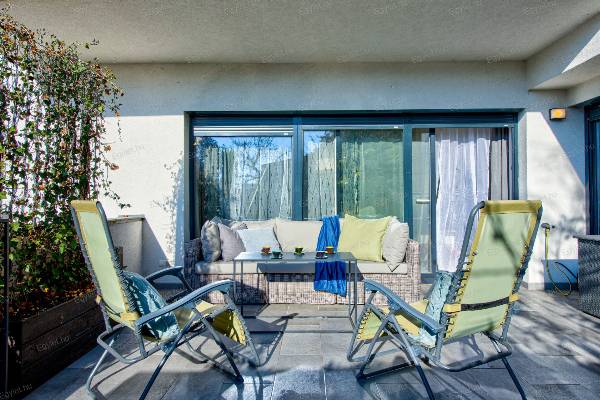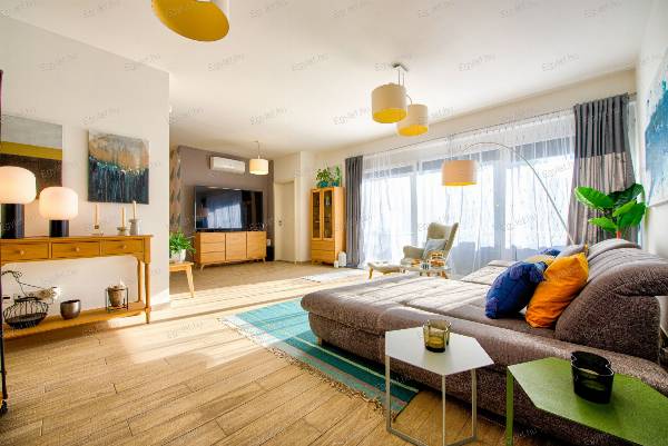 Budaörs szívében a Kápolnás-hegy lábánál, csendes aszfaltozott utcában, 116 m2-es, nappali + 3 hálószoba elrendezésű lakás, igényes új tulajdonosát várja. A 2018-ban épített mindössze 3 lakásos, kétemeletes szigetelt téglaépület földszintjén elhelyezkedő társasházi lakás impozáns 31 m2-es teraszkapcsolattal rendelkezik. A terasz területe részben sincs beszámítva a tulajdoni lapon található hasznos alapterületbe. Az újszerű lakás elrendezése élhető, az intim és a közösségi terek jól elkülönülnek egymástól. A komfortfokozat duplakomfort, hiszen a szülői és a gyermek lakrész is rendelkezik fürdőszobával, WC-vel. A szobák laminált parkettával, míg a többi helyiség járólappal burkolt. A ház fűtését és melegvíz ellátását kondenzációs gázkazán látja el, a túlmelegedés ellen saját split klíma véd, a biztonságról távfelügyeletre kötött riasztórendszer gondoskodik. A közös költség 20.000 Ft, a fűtésátalány mindössze 11.000 Ft. Az esztétikus konyhabútor és a beépített szekrények a vételár részét képzik. A lakáshoz tartozik egy mélygarázsi beálló, melynek értéke további 10.000.000 Ft és kötelezően megvásárlandó. Az ingatlan tehermentes, piaci hitellel hitelezhető, de vételára miatt az Otthon Start Programban nem tud részt venni. A környék közlekedése és infrastruktúrája jó: közlekedési csomópont 6 perc sétára, bölcsöde szintén 6 percre, iskola, óvoda 15 percen belül elérhető gyalogosan, bevásárlóközpont 10 percnyire gépkocsival. Mindent összevetve, ez az igazán „beleszeretős”, nívós lakás igazi otthont nyújt minden korosztálynak, akinek fontos a csend, a rendezett, nyugodt, biztonságos környezet, és fontosak a jószomszédi kapcsolatok. A hirdetéshez csatolt fotók, 3D séta, illetve videó megtekintését követően a felmerülő kérdések kapcsán felkészülten várom hívását a hét minden napján.