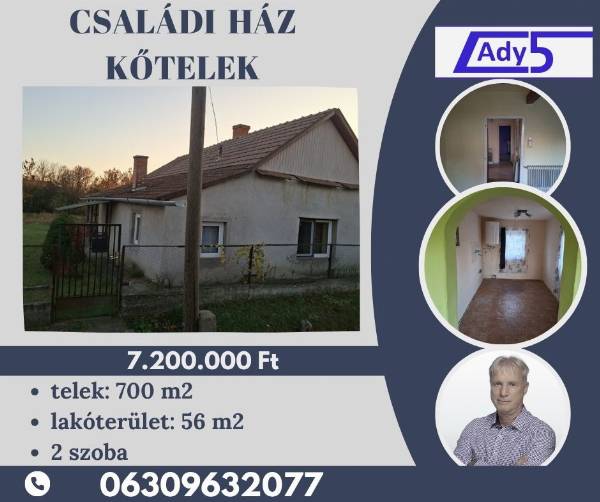 Eladó Szolnoktól 30 km-re, Kőtelken, csendes rendezett utcában 2 szobás családi ház. Az épület tégla alapra épült, vályog falazatú, nem vizesedik. A házban 2 szoba, konyha, fürdőszoba található, fűtése vegyestüzelésű kazán. A házhoz kapcsolóik egy kisebb tároló helyiség ami tartalmazza a kazánt. Az udvar rendezett, füvesített. A hirdetésben szereplő információk az eladótól származnak, pontosságáért felelőséget nem vállalunk. Keress akkor is, ha hasonló ingatlanod van, szívesen segítek az értékesítésben. Irányár: 7,2M érd: 30 963 2077