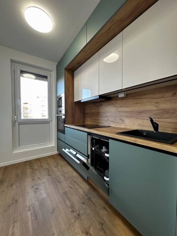 Teljesen felújított, azonnal költözhető 40 m²-es lakás eladó Pécs Kertvárosában, a Csontváry utcában! Pécs Kertvárosának egyik rendezett, csendes részén, a Csontváry utcában kínálok megvételre egy 10 emeletes, szigetelt társasház 5. emeletén található, 40 m²-es, 1,5 szobás lakást, amely teljeskörű felújításon esett át – gyakorlatilag minden új benne. A világos konyha új, egyedi tervezésű bútorral készült, beépített mikrohullámú sütővel, elektromos sütővel, főzőlappal és mosogatógéppel. A fa hatású munkalap és a modern zöld-fehér frontok kellemes, otthonos hangulatot adnak a térnek. A nappali tágas és napfényes, innen szép panoráma nyílik a Mecsek felé, a klíma pedig gondoskodik a kellemes hőmérsékletről egész évben. A fürdőszoba szintén teljesen új burkolatokat, szanitereket és modern dizájnt kapott. Minden helyiség külön nyílik az előszobából, így a lakás jól alakítható és funkcionálisan is átgondolt. A lakás távfűtéses, egyedi mérésű, tehermentes, és a teljes vételár megfizetését követően azonnal költözhető. A társasház karbantartott, kulturált lakóközösségű, a környék pedig kiváló infrastruktúrával rendelkezik – üzletek, iskola, gyógyszertár, orvosi rendelő, buszmegálló mind pár perc sétán belül. Ez a lakás ideális választás: első otthonnak fiataloknak, idősebbeknek, akik gondozásmentes, liftes házban keresnek új otthont, vagy befektetőknek, akik azonnal kiadható, új állapotú lakást keresnek biztos hozammal.