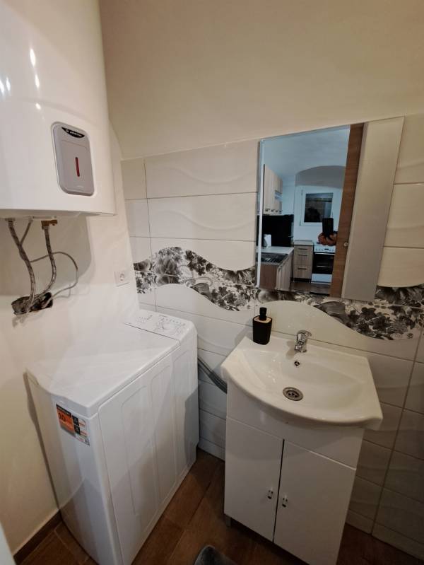 Kiadó a képeken látható 40 m2-es, 1 szobás felújított téglalakás Pécs történelmi belváros-Mecsekoldal határán, a Tettye utcában! A lakás nagyon kompakt és hangulatos, nemrég teljesen fel lett újítva, új bútorokkal és gépekkel lett berendezve. Az épület műemlék jellege miatt meglettek hagyva az utcafronti faablakok, de belül új műanyag bukó-nyíló nyílászárók lettek beépítve. A fűtés hűtő-fűtő klímával lett megoldva, a lakás nagyon jól tartja a kívánt hőmérsékletet. A rezsiköltség nagyon alacsony, közös költség nincs, minden fogyasztás alapján alakul. Dohányozni a belső udvaron lehet, szobatiszta kisállat tartása nem probléma! A lakástól a Tettye tér, a Széchenyi tér és a pécsi történelmi belváros pár perc sétával elérhető. A lakás hosszútávra, minimum 1 évre bérelhető, 2 havi kaució szükséges a bérléshez. További információkért keressen bizalommal! The 40 m2, 1-room renovated brick apartment shown in the pictures is for rent on the border of Pécs' historic city center and Mecsekoldar, in Tettye Street! The apartment is very compact and cozy, recently completely renovated, furnished with new furniture and appliances. Due to the listed nature of the building, the wooden windows facing the street were left, but new plastic hinged doors and windows were installed inside. The heating was solved with a cooling-heating air conditioner, the apartment maintains the desired temperature very well. The overhead costs are very low, there are no shared costs, everything is based on consumption. You can smoke in the inner courtyard, keeping a clean pet is no problem! Tettye tér, Széchenyi tér and the historic city center of Pécs can be reached within a few minutes' walk from the apartment. The apartment can be rented long-term, for a minimum of 1 year, a 2-month deposit is required for renting. Feel free to search for more information!
