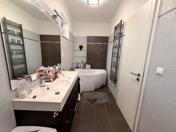 Kistarcsán, a Terézia utcában, csendes, rendezett családi házas övezetben kínálunk eladásra egy 2019-ben épült, 96,42 m²-es ikerházat, 585 m²-es saját telekkel és 20 m²-es, fedett terasszal. Az ingatlan tehermentes, kiváló műszaki és esztétikai állapotú, akár bútorozottan is költözhető! Főbb jellemzők: Lakóterület: 96,42 m² -Telek: 585 m² -Terasz: 20 m² -Építés éve: 2019 -Szerkezet: tégla falazat, 15 cm grafitos hőszigeteléssel -Nyílászárók: műanyag, elektromos redőnyökkel -Tető: Bramac cserép -Fűtés: gázcirkó, radiátoros + padlófűtés az előszobában, nappaliban és fürdőben -Állapot: újszerű, felújítást nem igényel -Használatbavételi engedély: rendben Elrendezés: -amerikai konyhás, világos nappali -3 hálószoba -előtér -fürdőszoba -külön WC -háztartási helyiség -nagy, fedett terasz (20 m²) – tökéletes helyszín családi és baráti összejövetelekhez Környezet és elhelyezkedés A ház nyugodt, zöldövezeti utcában található, mégis könnyen megközelíthető Budapest irányából. Buszmegálló sétatávolságra, míg bolt, iskola, óvoda, orvosi rendelő kb. 10 perc autóval elérhetők. Ideális választás családoknak és mindazoknak, akik korszerű, kényelmes és csendes otthont keresnek.