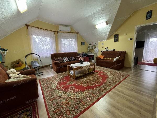 Eladó Kabán, egy tágas és világos családi ház, amely ideális választás lehet azok számára, akik a kényelmet és a nyugalmat keresik. Lokáció szempontjából is kiváló, hiszen a kabai gyógyfürdő közelében helyezkedik el. Az ingatlan alapterülete 128 m2, míg a telek mérete 1 284 m2, így bőséges helyet biztosít a családi élethez és a szabadidős tevékenységekhez. Az 1993-ban épült tégla ház jó állapotban várja új lakóit. Alacsony rezsi! Tehermentes! Otthon Start hitelre és CSOK Pluszra alkalmas! Az Ár irányár! A házban 3 hálószoba, 2 tágas nappali (egy az emeleten egy a földszinten), 2 fürdőszoba, hatalmas étkezős konyha, dupla erkély és egy 60 m2-es terasz található, amely lehetőséget biztosít a családtagoknak a különálló tér élvezetére. Alsó szinten : -nappali -étkező (3 éve építettek egy fa tüzelésű cserépkályhát) -konyha -fürdőszoba -Wc Felső szinten: -3 szoba -nappali -zuhanyzós fürdőszoba wc-vel -dupla Erkély A rezsi költségei mindössze 25-30 ezer forintra rúgnak, így a fenntartás nem jelenthet megterhelést. A ház külsőleg szigetelt valamint a födémek is szigetelve vannak. A fűtés cirkó rendszerrel működik, emellett a cserépkályha is hozzájárul a kellemes hőmérséklet biztosításához, legyen szó fával vagy szénnel való fűtésről. A saját split klímának köszönhetően a nyári melegben is kellemes hőmérsékletet teremthetünk. -Burkolatokat 2013-ban lettek felújítva, minden szoba laminált parkettás. -Nyílászárók 2015-ben lettek cserélve -Fűtése gáz cirkó kazánnal megoldott radiátoros hő leadással, felső szinten be lett építve egy Gree hűtő-fűtő klíma. -Radiátorok 2024-ben lettek cserélve Az ingatlan összkomfortos, így minden modern kényelmet biztosít. A kertre néző kilátás pedig igazán nyugodt és zöld környezetet biztosít a mindennapokban. A parkolás 3 állásos garázsban megoldott, ami további kényelmet nyújt az autóval rendelkező lakók számára. A délkeleti tájolás pedig garantálja, hogy a napfény a nap nagy részében beragyogja a lakótereket. Továbbá a telken van egy fűtött 60 m2-es melléképület is és egy 90 m2-es 3 állásos garázs. A telek rendezett, részben térkövezett részben parkosított ahol egy filagória is helyet kapott. Amennyiben a hirdetésben szereplő ingatlan felkeltette az érdeklődését hívjon bizalommal és tekintse meg akár még ma! Tegyen ajánlatot és legyen Öné ez a nagyszerű ház!