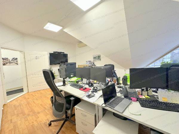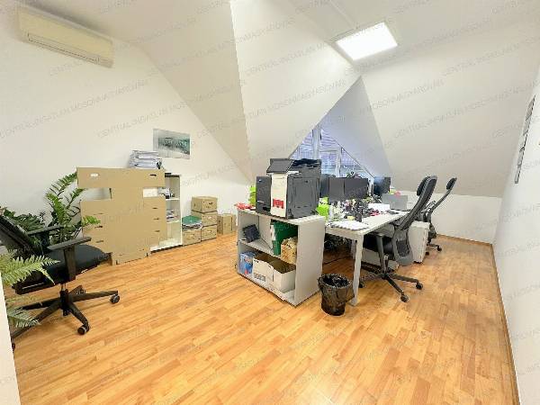 Mosonmagyaróváron, belvárosában, 67m2 teljes alapterületű, 1. emeleti, 2 szobás iroda eladó. A társasházban található ingatlan egy fürdő elhelyezésével lakássá alakítható. Kiváló választás saját otthonnak és befektetésnek egyaránt. - Az átlagosnál egy kicsit nagyobb belmagasság tágasabbá teszi az ingatlant. A helyiségek jó méretűek. A külön konyha igény esetén a mellette lévő iroda/nappali helyiséggel egybenyitható. -Az ablakok pár éve ki lettek cserélve, minden ablak műanyag profillal készült, hőszigetelt üvegezésű nyílászáró. A tetőablakok is műanyag Velux ablakok. Beépített sötétítő roló, egyedi kialakítású árnyékoló reluxa és szúnyogháló is felszerelésre került. - A 67m2 teljes alapterületű iroda a belvárosban található, gyalogosan elérhető minden üzlet, szolgáltatás. Parkolásra lakcímigazolással kedvezményes bérlet váltható. - Az iroda házközponti, kondenzációs gázkazánnal fűtött, a lapradiátorokon egyedi mérővel, termosztátos csapokkal. A fő helyiségekbe egy-egy hűtő-fűtő klíma is fel lett szerelve. A meleg vizet szintén a házközponti gázkazán biztosítja, meleg víz órával mérve. - Az ingatlant az elmúlt időszakban irodaként használták, ezért szinte minden helyiség irodai, strapabíró burkolattal burkolt. A led lámpatestek és a padlószőnyeg szinte új. -Az internet és a belső informatikai hálózat minden fő helyiségben kiépített. Irodai célra azonnal használható. -Az ajánlatban szereplő irodának van egy „kis testvére” is. Jelenleg a két iroda egybe van nyitva összesen 107m2 (67m2+40m2), egyben is megvásárolható. Mindkét ingatlan önálló rendeltetési egység, önálló helyrajzi számmal, saját mérőórákkal. Mindkét iroda könnyen lakássá alakítható és átminősíthető. Kiválóan alkalmas belvárosi irodának, lakásnak, befektetésnek egyaránt. Ár-érték arányban a legjobb a piacon! KIZÁRÓLAG A CENTRÁL-INGATLAN KÍNÁLATÁBAN! A megadott elérhetőségeken várom érdeklődését!