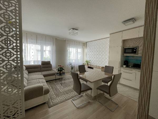 Kiadásra kínáljuk ezt a kiváló állapotú, tégla építésű, elegáns luxus lakást Budapest XIII. kerületében a Zsinór utcában, amely a modern életstílus minden igényét kielégíti. Jellemzői: - 63 négyzetméter alapterület, - amerikai konyhás nappali, - 2 hálószoba, - fürdő Wc külön, - házközponti fűtés, - klíma, - közös ktg: 23.000.-Ft - alacsony rezsi. A lakás jelenleg félig bútorozott, és megbeszélhető a teljes berendezettség is. Az épületről: - 2020-ban készült, tehát a legújabb trendek és technológiák jegyében épült, garantálva a kényelmet és a biztonságot. - a társasház kifogástalan állapotú, a lépcsőház liftes, akadálymentesített, a lakóközösség együttműködő és barátságos. Parkolás: - a társasház mélygarázsában megoldott a parkolás, a bérelt parkolóhely kedvező havi díjért tovább bérelhető, illetve az utcán is mindig található parkolóhely. Környékről: - a közelben található Aldi, Spar, Lidl és a Lehel Csarnok. - sportolási lehetőségek: Prestige Fitness Wellness, a Mekka Gym vagy a Vasas Sporttelep. - családosok számára is ideális, a környéken működik többek között a Csupa Csoda Óvoda, a Gyermekkuckó Bölcsőde és a Hegedüs Géza Általános Iskola. Feltételek: - 2 havi kaukció + 1 havi bérleti díj - kisállat nem hozható, - dohányzás nem megengedett - költözés december 15.-től Amennyiben felkelkeltetettem érdeklődését, várom megtisztelő hívását!