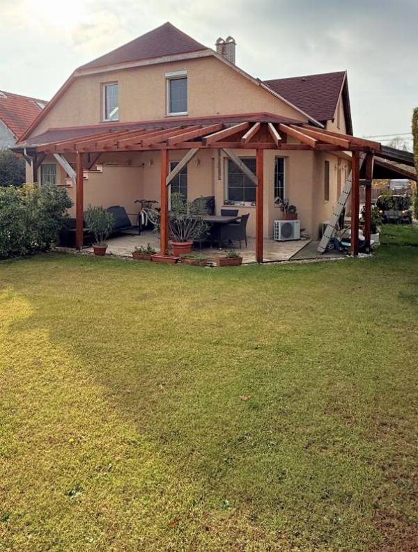 Soroksáron eladó egy könnyűszerkezetes ikerházfél kertes, csendes környezetben! Eladásra kínálok Soroksár kertvárosi részén található, 110 nm alapterületű, könnyűszerkezetes ikerházfelet. A ház 2000-ben épült, jelenlegi belső formája és terei felújítandó és befejezendő állapotú. Főbb jellemzők • Telek mérete: az osztott telekrész a házhoz 264 nm • Lakótér: földszint 71 nm, tetőtér 39 nm • Szobák száma: 4 • Fűtés: gázkészülék, radiátoros hőleadással • Nyílászárók: 2 rétegű thermo üveges, műanyag ablakok • Fal- és födémszigetelés: az építési tervrajzok alapján, falon + 10 cm • Tető: teljesen felújított zsindely Elrendezés • tágas nappali-konyha-étkező egy légtérben, közvetlen teraszkapcsolattal • 4, földszinten 1, tetőtérben 1 + 2 fél • kényelmes fürdőszoba + külön WC (opcionálisan második fürdő) • háztartási helyiség / tároló a praktikus mindennapokért, melegvízbojler, gázfűtés készülék Kert és külső tér A saját, szeparált kert 264 nm, amely tökéletes családi pihenésre, játékra vagy akár kerti sütögetéshez. A telek kerítéssel elválasztott, így az ikerházfelek teljesen saját, privát életteret biztosítanak. A ház előtt 2 autó számára kialakított felszíni beálló található. Műszaki és energetika • alacsony rezsi • gyorsan felfűthető Elhelyezkedés A környék csendes, családbarát. Az M0, M5, E50, Soroksári út, Hév könnyen elérhető, így kiváló választás ingázóknak is. Amennyiben felkeltette érdeklődését ez a családi ikerházfél, kérem, keressen a megadott elérhetőségen.