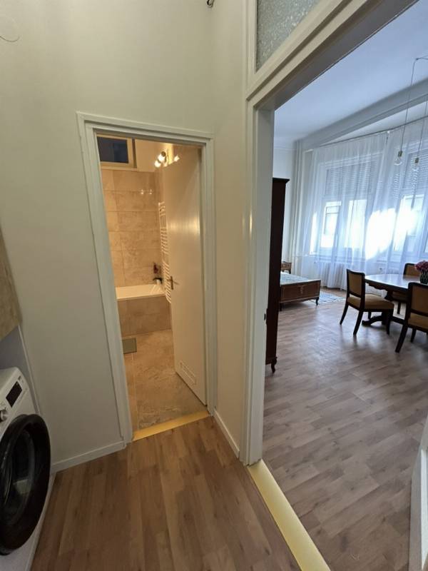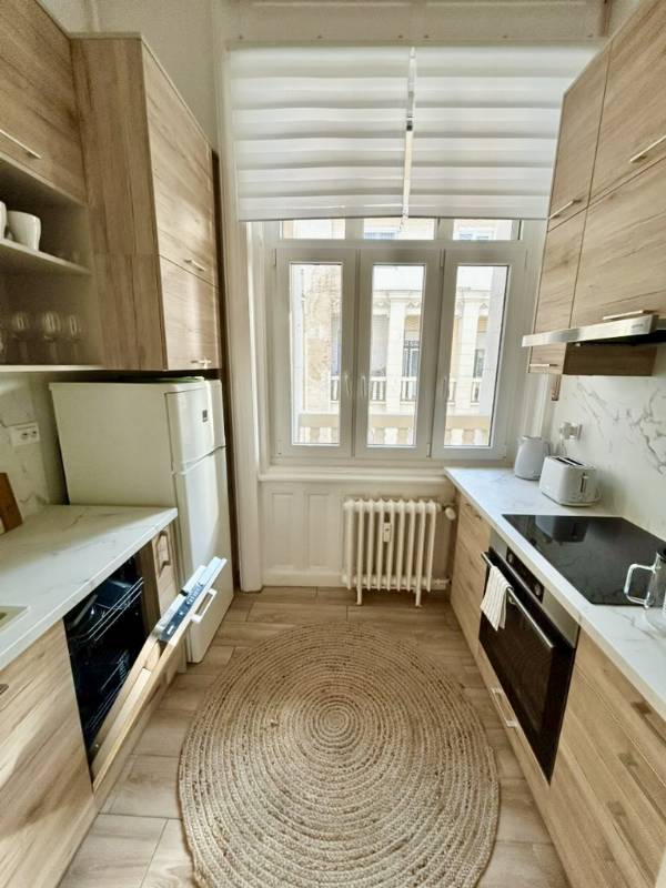 Kiadó egy 54 nm-es, 2 szobás felújított lakás, 6 nm-es loggiával. A lakás tágas, világos, frissen modernizált terekkel rendelkezik, és minden kényelmet biztosít leendő bérlője számára. Főbb jellemzők: - Távfűtés egyedi mérőkkel – gazdaságos fenntartás - Új, korszerű világítási rendszer - A nagyobbik szobában praktikus étkezősarok - A nyílászárók korábban cserélve lettek, így kitűnő hő- és hangszigetelés - Újonan felújított konyha, fürdőszoba és előszoba - A konyhában: új indukciós tűzhely, sütő, mosogatógép, páraelszívó, - A loggia új teraszbútorral - Közös költség 7.200 Ft/hó A társasház kívülről teljesen megújul, már most új, modern liftet is kapott. Felszereltség: A lakás teljesen berendezett és gépesített – korábban Airbnb-ként működött –, így az új bérlőnek csak a személyes holmiját kell hoznia. Tartozékok többek között: mosógép, mosogatógép, okos TV-k, klímák, vasaló, hajszárító, indukciós főzőlap, sütő, mikró, kávéfőző, vízforraló, ágynemű, stb. Feltételek: - Kisállat és dohányzás nem megengedett. - Minimum 1 éves szerződés, 1 havi bérleti díj + 2 havi kaució. - Ettől rövidebb távú bérlés is lehetséges, egyénileg egyeztetett, eltérő árazással. Igényes kialakítás, irodának is kiválóan alkalmas! A belváros közelsége miatt minden elérhető karnyújtásnyira: villamos, éttermek, kávézók, üzletek, kulturális intézmények. Amennyiben felkeltette az érdeklődését, keressen bizalommal!
