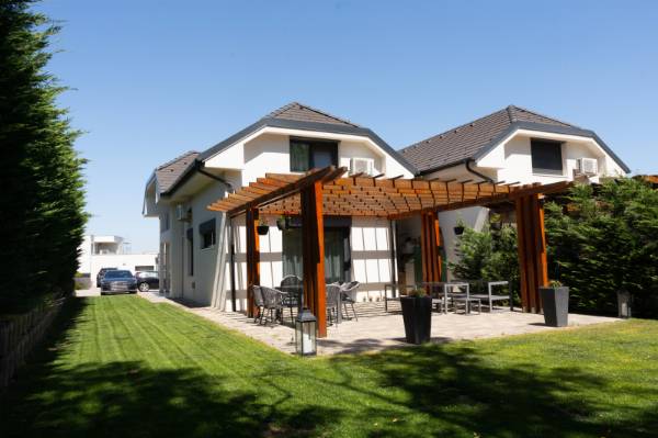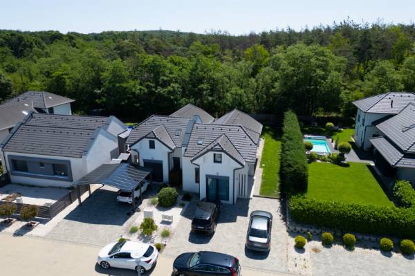 RITKA! Ha olyan otthont keresel, ahol a kertkapcsolat természetes, a szomszéd mosolyog, és a gyerekek szabadon bicikliznek az utcában – akkor megtaláltad. A Sissy Villa Park nem csak egy lakópark – egy életérzés. Amerikai hangulat Mogyoródon: kerítés nélküli házak, rendezett előkertek, közösségi programok, családias légkör. Itt a lakók ismerik egymást, figyelnek a másikra, mégis megmarad a privát tér. A kínált ingatlan egy 2020-ban épült ikerházfél, de külön helyrajzi számon, jogi és funkcionális értelemben is önálló családi ház. Főbb jellemzők: • Nappali + 3 hálószoba • 2 teljes értékű fürdőszoba • Modern gázcirkós fűtés • Praktikus alaprajz • Intim kertkapcsolat • Kellemes terasz Az ikerfelek csupán egy rövid falszakaszon érintkeznek, a kivitelezés pedig gondoskodik a zajmentes, nyugodt életről. Az építéskori teljes tervdokumentáció rendelkezésre áll. A megközelítés Budapestről kb 15-20p autóval. Ha egy barátságos, mégis elegáns környezetre vágysz, ahol a nyugalom és a közösség kéz a kézben jár – akkor ez az otthon neked szól.