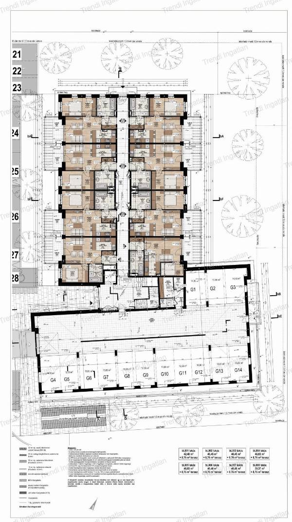 Veszprém frekventált részén, a Dózsa városban épülő 43 lakásos, liftes társasházban különböző alapterületű lakások eladók! A meghirdetett földszinten található 39,82 nm-es lakásban amerikai konyhás nappali, hálófülke, fürdőszoba, előtér található. A nappaliból 8,76 nm-es terasz és 44,60 nm-es kertkapcsolat nyílik. A lakás fűtéskész ára: 46.990.000 Ft Kulcsrakész befejezés kérhető. Kulcsrakész ár: 52.990.000 Ft Parkoló ára: 2.800.000 Ft Garázs ára: 7.800.000 Ft - 8.500.000 Ft. A lakásokhoz 1 db parkolót vagy 1 db garázs vásárolni kell. Lehetőség van tároló vásárlására is, ára: 1.800.000 Ft – 2.200.000 Ft/db A minőségi anyagokból épülő tárasház 30 cm-es falazóelemből, 20 cm-es homlokzati hőszigeteléssel épül. A 3 rétegű, 6 kamrás műanyag, hőszigetelt nyílászárók kívül antracit színűek. Az ár tartalmazza a beépített, rejtett redőny tokokat lefutókkal. Felár ellenében elektromos kivitel is kérhető. A társasház fűtését hőszivattyú biztosítja, lakásonként egyedi hőmennyiségmérővel és termosztáttal. A modern, 3 emeletes, liftes társasházban a földszinti lakások terasszal és kertrésszel, az emeleti lakások erkéllyel rendelkeznek. A társasház udvarán térkövezett gépkocsibeállók kerülnek kialakításra. Lehetőség van garázs vásárlására is. Várható fűtéskész átadás: 2027. IV. negyedév Ha szeretné megtekinteni a helyszínt, vagy bővebb tájékoztatást szeretne kérni, várom hívását akár hétvégén is! Díjmentes, bankfüggetlen hitelügyintézéssel állunk rendelkezésére. A hirdetésben feltüntetett képek illusztrációk.