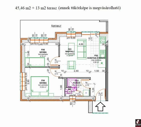 Ez az ÚJ ÉPÍTÉSŰ lakás Mogyoród egyik legnyugodtabb, legszebb részén található, ráadásul a HÉV megállótól 5-7 perc sétára! A település szélén gyönyörű természeti környezetben eladó egy 1. emeleti, 1+2 szobás, 45,46 m2-es + 13 m2 terasszal rendelkező, PANORÁMÁS, világos lakás, melybe 2026. JÚLIUSÁBAN BEKÖLTÖZHET. Ráadásul a zárt udvaron egy térkővel burkolt FELSZÍNI PARKOLÓ is tartozik a lakáshoz. (Szükség esetén plusz parkolót is vásárolhat.) A fűtést korszerű energiatakarékos HŐSZIVATTYÚS, PADLÓFŰTÉSES rendszer biztosítja, így a rezsi kedvező marad. (H tarifa) A 15 cm vastag szigetelés segít megtartani a hőt télen, és hűvösen tartani nyáron. Az épület energia besorolása A+ A BELSŐ TÉR AZ ÖN IGÉNYEINEK MEGFELELŐEN LESZ KIALAKÍTVA!1 hálószobát szeretne vagy 2-t? Egyben legyen a fürdő a wc-vel, esetleg külön? Fürdőkádat szeretne vagy zuhanyzót? Milyen design tetszene önnek a saját otthonában? Milyen szanitereket, milyen burkolatokat, stb.? A lakóparkban 5 db 6 lakásos (földszint + egy emeletes) ház épül. 2 db épület lakásai hamarosan átadásra kerül, de EZ A LEGJOBB ELHELYEZKEDÉSŰ ÉPÜLET a lakóparkban, aminek a lakásait ebben a hirdetésben kínáljuk megvételre, mivel ez önállóan áll. (A többi épület esetén közelebb vannak egymáshoz a házak.) Több eladó lakás van még, ami 2026 júliusában költözhető, így akár többet is vásárolhat, ha a család külön generációi inkább külön lakásban élnének, de azért egymáshoz közel. Az itt épülő lakások belső mérete 45 m2 (+ 13 m2 terasz), 68 m2 (+ 20 m2 terasz), ill. 91 m2 (+26 m2 terasz). A nyárnál korábban költözhető lakások már elkeltek. A nappali és a terasz a délnyugati tájolásnak köszönhetően napfényben fürdik egész nap. Igazán hangulatos a teraszon vagy a kertben egy étkezés ebben a fantasztikus környezetben, vagy csak egyszerűen kávézgatás közben is élvezheti a gyönyörű táj látványát és a friss levegőt. A többi ablakból szép új építésű másik házat láthat ebben a lakóparkban, vagy a hamarosan a szomszédos telkeken épülő lakóparkban. Mogyoródon itt egy új építésű övezet kerül kiépítésre. A lakópark séta távolságra van a napi bevásárlási lehetőségektől és a HÉV-től, mellyel fél óra alatt Budapesten az Örs vezér téren lehet (vagy 10 perc alatt Gödöllő központjában). A FALAK 30 cm-es Porotherm téglából épülnek és rajta 15 cm a szigetelés. Az ABLAKOK 3 rétegűek. FŰTÉS: Fischer monoblokkos levegő-víz hőszivattyú (Minden lakáshoz saját hőszivattyú tartozik. Ennek a rendszernek nincs beltéri egysége, így nem foglalja a helyet a lakásban. Ráadásul a radiátoroknak sem kell hely, mivel padlófűtés van minden helyiségben.) HŰTÉS: a nappaliban klíma kiállás (Igény esetén kerülhet a hálószobákba is külön klíma. De úgy is kérheti a nappaliban a klíma elhelyezését, hogy nyitott szoba ajtók esetén a hálószobákat is behűti.) Lakások közötti elválasztó fal: Silka HM300 NF-Gt (Azért, hogy semmilyen zajt ne hallhasson a szomszédból!) A vételár továbbá a következőket foglalja magában: - Burkolatok (hideg-meleg): br. 8.000 Ft/nm - Beltéri ajtók: br. 80.000 Ft/db kilinccsel - Csaptelepek: 30.000 Ft /db - Beépített tartályos WC, - Épített zuhanyzó (üvegfal nélkül), - Melegvíz Ariston bojlerrel - Elektromos redőnyhöz előkészítés - 1db klíma becsövezése - Erkély korlát és lépcsőkorlát vasból - szegélykővel, növénysorral a saját kertek közötti elválasztás - Füvesített, növényekkel beültetett kert - Kaputelefon, kapucsengő - Új kerítés az utcafronton - Elektromos kis-és nagykapu, - Parkolóban elektromos tolókapu - Parkolókhoz elektromos autótöltő kicsövezése lehetséges, felár ellenében. A természet közelsége, a csend, a nyugalom, a modern, energiatakarékos, komfortos, az ön által vágyott módon kiépített lakás összességében egy ellenállhatatlan kombinációt ad! Szívesen megmutatom élőben is. Hívjon akár az esti órákban, vagy akár hétvégén is!
