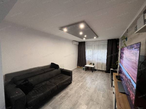 Szeretne Győr egyik kedvelt városrészén élni? Nem szeretne bajlódni a felújítással? Szeretné, ha a rezsi költsége kiszámítható lenne, és a tényleges fogyasztást kellene csak fizetnie? Akkor ez a lakás Önnek való! Megvételre kínálok Győr-Adyvárosban a kórháztól, és a plázától egyaránt pár perces sétatávolságra egy 53 nm-es, nappali+ hall +hálós felújított panellakást. Az épület szigetelt, mind a homlokzatra, mind a födémre került szigetelés (födémre hő-és vízzáró szigetelés is felhelyezésre került). A külső nyílászárók műanyagra lettek cserélve, illetve a lakás fűtéskorszerűsített. Ennek köszönhetően az energetikai besorolása A-s, így a rezsi nagyon kedvező, átlagos használatnál 25-30.000 forint közötti összeg jön ki még a téli hónapokban is. ( A házban a közös költség 8750 Ft, mely a lépcsőház takarítását is tartalmazza.) A lakásba egy ötponton záródó modern, biztonságos bejárati ajtón keresztül jutunk. Itt lett kialakítva egy hatalmas beépített gardróbszekrény, mely nem csak igényes és szép, de nagyon praktikus, hiszen rengeteg holmit elnyel. A folyosóról nyílik a fürdőszoba (káddal kialakított), a mosdó (itt találhatóak a vízvezetékek) A folyosó végén található a hall, mely a nappalival egybe lett kialakítva. A nappali mellett található a hálószoba, illetve a konyha is. Mindegyik helység szép világos. Mind a hálószobában, mind a nappaliban található egy-egy hűtő-fűtő klíma, mely 3,5 kw-os, wifis. A klímáknak köszönhetően az átmeneti időszakban, illetve a nyári hőségben is kellemes hőmérsékletet lehet a lakásban biztosítani. A lakás felújított. Az ablakok műanyagok, redőnnyel és szúnyoghálóval felszereltek. A felújítás során cserélve lett a legtöbb villanyvezeték ( a villanyvezetékek 905 már réz), az összes konnektor, a víz-és szennyvizvezetékek. A felújítás során új mosdó, és fürdőszoba lett kialakítva. Cserélve lett a bejárati ajtó, a belső ajtók, és az ablakok. Hatalmas gardróbszekrény lett kialakítva a folyosón, illetve a "panelpadlás" is megújult. A konyha is fel lett újítva, illetve a lakás minden helységében a padló. A hirdetési ár tartalmazza a lakásban található bútorok többségét,valamint a mosógépet, szárítógépet így akár a bútorok szállításának, beszerelésének költségét, idejét és energiáját is meg tudja spórolni. Ha az ingatlant szeretné megtekinteni, keressen bizalommal!