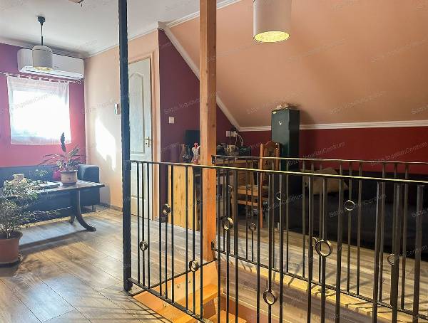 Bács-Kiskun megye Kunfehértó kedvelt üdülőterületén, beépített tetőteres, 118 m2-es nyaraló eladó. A tégla falazatú ingatlan 2003-ban épült. A 70,6 nm-es földszinti részen található egy szoba, nappali, konyha, étkező, fürdőszoba+WC, külön WC, előszoba és terasz. A tetőtérben, amely 47,4 nm-es, három szoba, közlekedő és tároló került kialakításra. Az otthon melegéről vízteres kandalló gondoskodik, hőleadása radiátorokon keresztül történik. Az épület hűtését/fűtését 2 db klíma biztosítja. A világos, jó elosztású hétvégi ház járólapos és laminált burkolattal van ellátva. Az ingatlan északi homlokzata 10 cm-es hőszigeteléssel, a tetőtér pedig 20 cm-es szigeteléssel rendelkezik. Az épületbe műanyag nyílászárók kerültek beépítésre, melyek redőnnyel ellátottak. A víz- és villanyhálózat korszerű állapotban van. Az ingatlan 458 nm-es telken helyezkedik el, víz, villany közművekkel ellátott, gázcsonk a kapun belül található. Öntözésre fúrt kútról van lehetőség. A nyaralóhoz tartozik egy tároló és egy melléképület, amely két gépkocsi beállására alkalmas. Vevő ügyfeleinket díjmentes hitel tanácsadással és teljeskörű ügyintézéssel segítjük az ingatlan megvásárlásában. Bővebb információért keressen bizalommal!