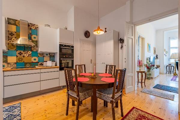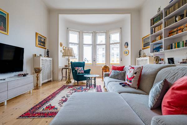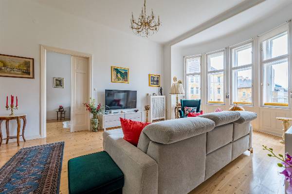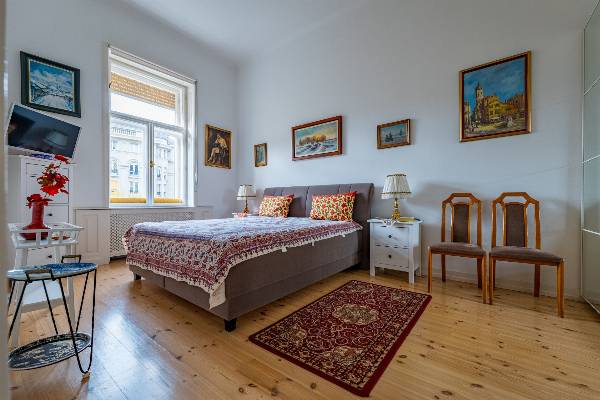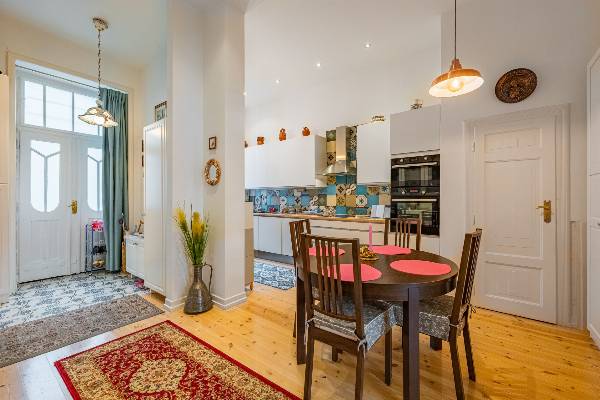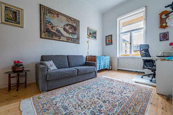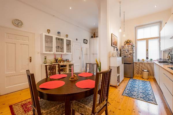 Stílusos nagypolgári lakás a Palotanegyedben ELADÓ egy 2.emeleti 95nm-es 3 szobás nagypolgári lakás a híres Bp. VIII. ker Gutenberg- Otthonban a belváros szívében. A Bp. VIII. ker Palotanegyed, Gutenberg téri ingatlan igényesen és teljeskörűen felújított, bútorozott hangulatos 3 szobás polgári lakás, mely a magyar szecesszió egyik emblematikus védett műemlék épületében a Gutenberg Ház 2.emeletén található. A lakás világos, tágas nappalival a Gutenberg térre és budai kilátással és onnan nyíló 2 nagy szobával , modern konyhával, stílusos fürdővel várja új tulajdonosát. A napfényes lakás részei: -nappali 35nm -szoba 21nm -szoba 21nm -előszoba -konyha – étkező -kamra -WC -fürdőszoba A szobákból csodás kilátás nyílik a Gutenberg térre és a távoli budai hegyekre. A nappaliban található Zsolnay cserépkályha ékessége a szobának. A fürdőszoba 2 bejáratos, az egyik hálószobából és az étkezőből is elérhető. A konyha-étkező teljes átalakítása során minőségi gépekkel lett felszerelve. Fűtése: gáz-cirkó (Bosch) A ház védett műemlék, a biztonságot a kiépített kamera-rendszer is szolgáltatja, a lakók külön kártyával léphetnek be az épületbe. A ház külső homlokzatának felújítása tervbe van véve. A ház belső udvarán található kulturális központ, egy színháznak ad otthont, mely jelenleg nem üzemel. Lokáció: Csendes, térre néző, központi, 1 saroknyira a 4,6-os villamostól, a Rákóczi-tértől. A lakás a múlt eleganciáját ötvözi a modern komforttal-tökéletes választás otthonnak vagy befektetésnek a város központjában. Ne maradjon le róla! Várom hívását! 06-70/930-2653