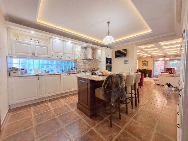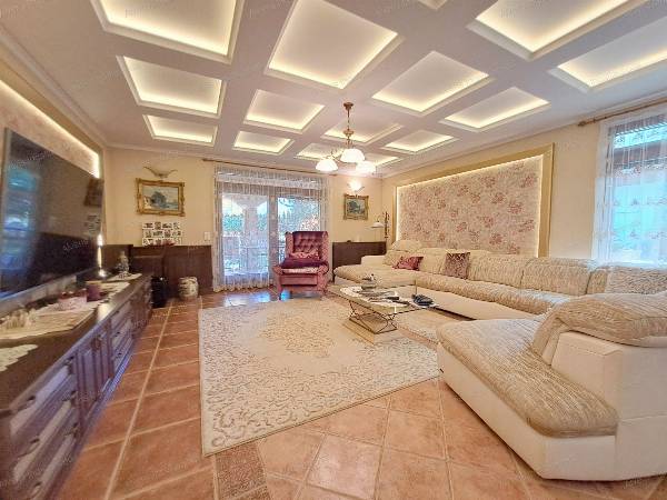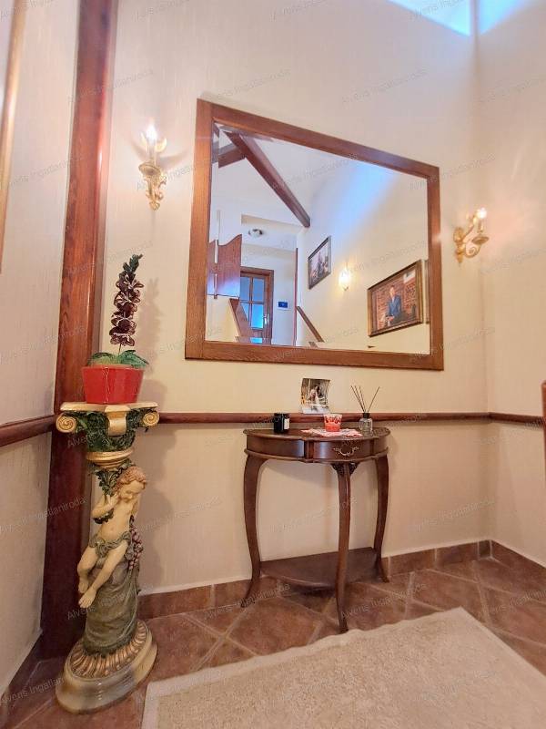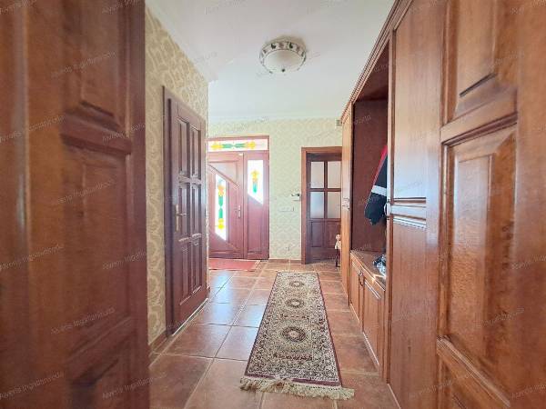 A romantikának érzelmileg túlfűtött kiáramlásában, kastélyok, főúri rezidenciák kuriális, intellektuális kifinomult formáiban kínálok vásárra egy 247 m2-es családi villát, amelyet a lakberendezői meglátás és az egyéni ízlés ötvözete keltett életre, szabtak a mai kor arculatának igényeire. A meseszép otthon Nyíregyháza Orosi út elején, csendes aszfaltozott zsákutcájában kapott méltó helyet, nemesi kiváltságokkal bíró téli-nyári kertjével, 158 m2-en fitness-wellness és borospince kényeztetéssel, a középkori fogadók hangulatát idéző nyári lakkal, amelyben a gasztronómia művészetének a képzelet szülhet határt. Belső világában 4 szoba, 2 fürdőszoba, 4 WC, konyha mesteri módon megmunkált üvegborítású tálalószekrényével, majd a nappali impozáns kandallójával örvendezteti lakóit. Négy keréken járó fogatainkból kettő is elfér a parkolóházban. Szilárd, rendíthetetlen tartását a kastélyfalak mintájára 38 cm-es Porotherm téglából és 10 cm-es szigetelés borításával emelték fel. Zord, hideg hónapokban talpunk alatt érezhetjük az otthon melegségét, kivéve a hálókban, ahol fűtőtesteket építettek. Nyári tikkasztó hőségben a ház hűtésére is nyílik lehetőség. Az erdő ajándékozta terméséből 3 rétegű üvegezéssel faborítású nyílászárók, villanyredőnnyel, szunyoghálóval nyújtanak védelmet és engednek szemünknek gyönyörűséget a kilátásban. Két utcából nyílik járat a 2000 m2-es birtokra, amelyekből szépséges kövekkel lerakott udvarra érkezünk, ahol kertészekkel gondosan ápolt növényzet, lenyűgöző park fogadja vendégeit. A kert tava mellett pezsgőfürdő enyhíti megfáradt lelkünket és testünket elárasztva földi javakkal, segítve a szemlélődést. A helyiségekben mindent látó őrszemek vannak elhelyezve, riadalmat keltve és távol tartva az útonállókat. Az emberi kéz által alkotott varázslatosan kimunkált bútorzat, a vásár külön alkujának részese lehet. Amennyiben a leendő Gazda, Várományos megérkezne, úgy bízva, javadalom nélkül adunk betekintést, segítve a megegyezést.