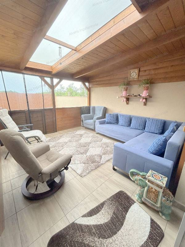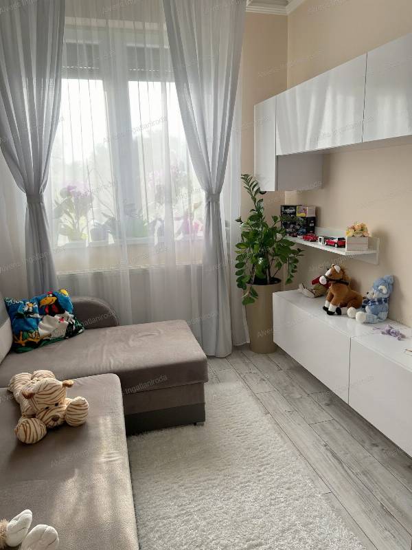 Álomotthon Nyíregyháza-Nyírszőlős szívében! Eladó egy minden igényt kielégítő, 2015-ben épült, kizárólag garázsnál érintkező ikerház hátsó lakóegysége, amely a Sóstói-erdő közelségében, egy hangulatos zsákutcában található. Az ingatlan egyszerre kínál nyugalmat, biztonságot és modern kényelmet. A ház 93 m² alapterülettel rendelkezik, amelyben 3 szoba, tágas nappali, világos konyha, gardrób, fürdőszoba, külön WC és közlekedő kapott helyet. A fűtést gáz cirkó padlófűtéssel biztosítja, de a klímaberendezés is hozzájárul a komforthoz minden évszakban. A 470 m²-es, teljesen körbekerített telek gondozott, parkosított, térkövezett, és igazi privát életteret nyújt. A házhoz két garázs, több terasz (köztük egy kb. 15 m²-es fedett ponyvás), bográcsozó és tároló is tartozik, így tökéletes helyszín családi és baráti együttlétekhez. A modern extrák – riasztó- és kamerarendszer, elektromos kapunyitó, fúrt kút, öntözőrendszer és beépített bútorok – mind hozzájárulnak ahhoz, hogy ez az ingatlan valóban prémium kategóriás otthon legyen. Ha Ön egy biztonságos, nyugodt környezetben található, azonnal költözhető, igényesen megépített otthont keres, ahol a család minden tagja megtalálja a saját életterét, akkor ez az ingatlan tökéletes választás.