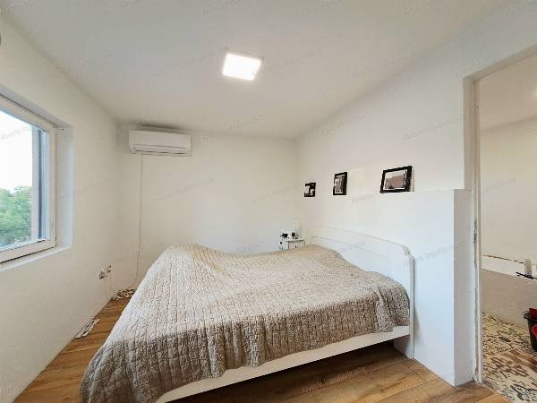 Mediterrán villa Sóstóhegy határában – egy igazi ékszerdoboz különleges élettérrel Nyíregyháza Sóstóhegy frekventált részén, aszfaltozott út és főút közvetlen közelében kínálunk megvételre egy minden szempontból egyedi, mediterrán stílusú villát, amely igazi kuriózum a piacon. Az ingatlan 3600 m²-es, parkosított telken fekszik, melyet őshonos fák és gondosan kialakított kert ölel körbe, békét és különleges atmoszférát teremtve. A 90 m²-es lakótér két szinten helyezkedik el: Alsó szint (70 m²): tágas nappali hangulatú szoba, közlekedő, fürdőszoba és külön WC. Felső szint (20 m²): intim szoba, konyhasarokkal és saját fürdővel. Az ingatlan éke a 48 m²-es panorámás terasz, amely a természet közelségét varázsolja a mindennapokba és az ehhez kapcsolódó, felső szint oldalsó részében elhelyezkedő hangulatos loggia a nyári esték tökéletes színtere. Az épület téglafalazatú, belsőleg szigetelt, modern hőszigetelt nyílászárókkal felszerelt. Az ellátottság elsőrangú: víz, gáz, háromfázisú villanyáram, fúrt kút, valamint fűtő-hűtő klíma gondoskodik a kényelemről. Sokoldalúságának köszönhetően az ingatlan nemcsak otthonként, hanem impozáns bemutatóteremként, reprezentatív telephelyként vagy akár építési vállalkozók számára ikerházaknak teret adva, befektetési lehetőségként is kiváló. Ez az ingatlan több mint egy otthon: életérzés, inspiráció és lehetőség.