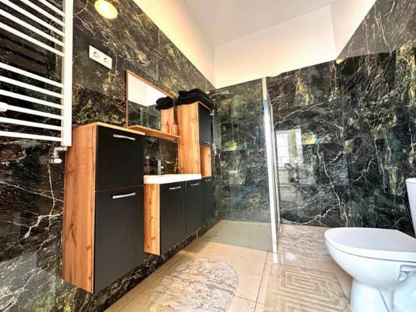 ELADÓ 150 nm-es, bútorozott lakás az V. kerületben, a Haris közben. A felújítás során 2 lakássá lett osztva, ami befektetés szempontjából kiváló, hiszen gyorsan bérbeadható, illetve 2 lépcsőházból megközelíthető. Ez a csendes, légkondicionált, utcai nézetű ingatlan a 4. emeleten helyezkedik el, ezáltal egész nap élvezhetjük a természetes napfényt. A lokáció miatt ideális lehet egyetemistáknak, de akár családoknak egyaránt. Fűtése: gáz-cirkó Az ár alkuképes. Megtekintéssel kapcsolatban állok rendelkezésére.